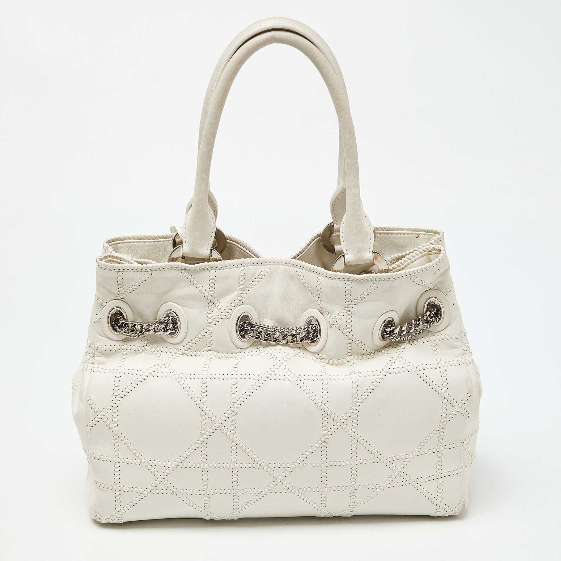 DIOR White Cannage Leather Chri Chri Chain Tote