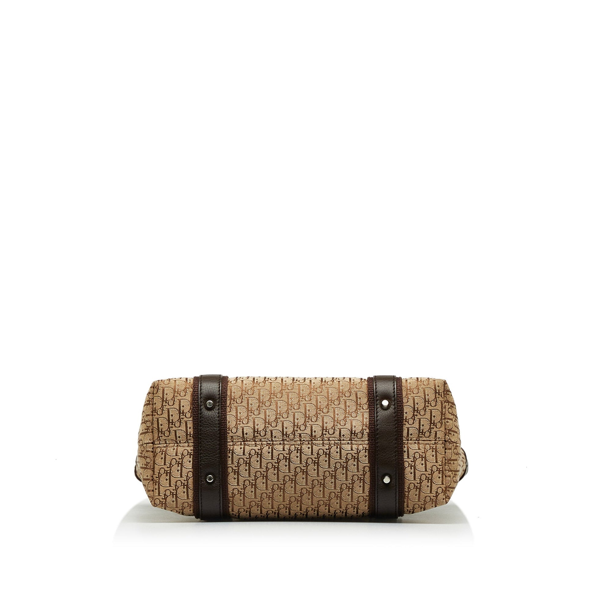 The Street Chic features a canvas body with leather trim, flat leather handles, an open top with magnetic snap closure, and interior zip and slip pockets. Comes with dust bag