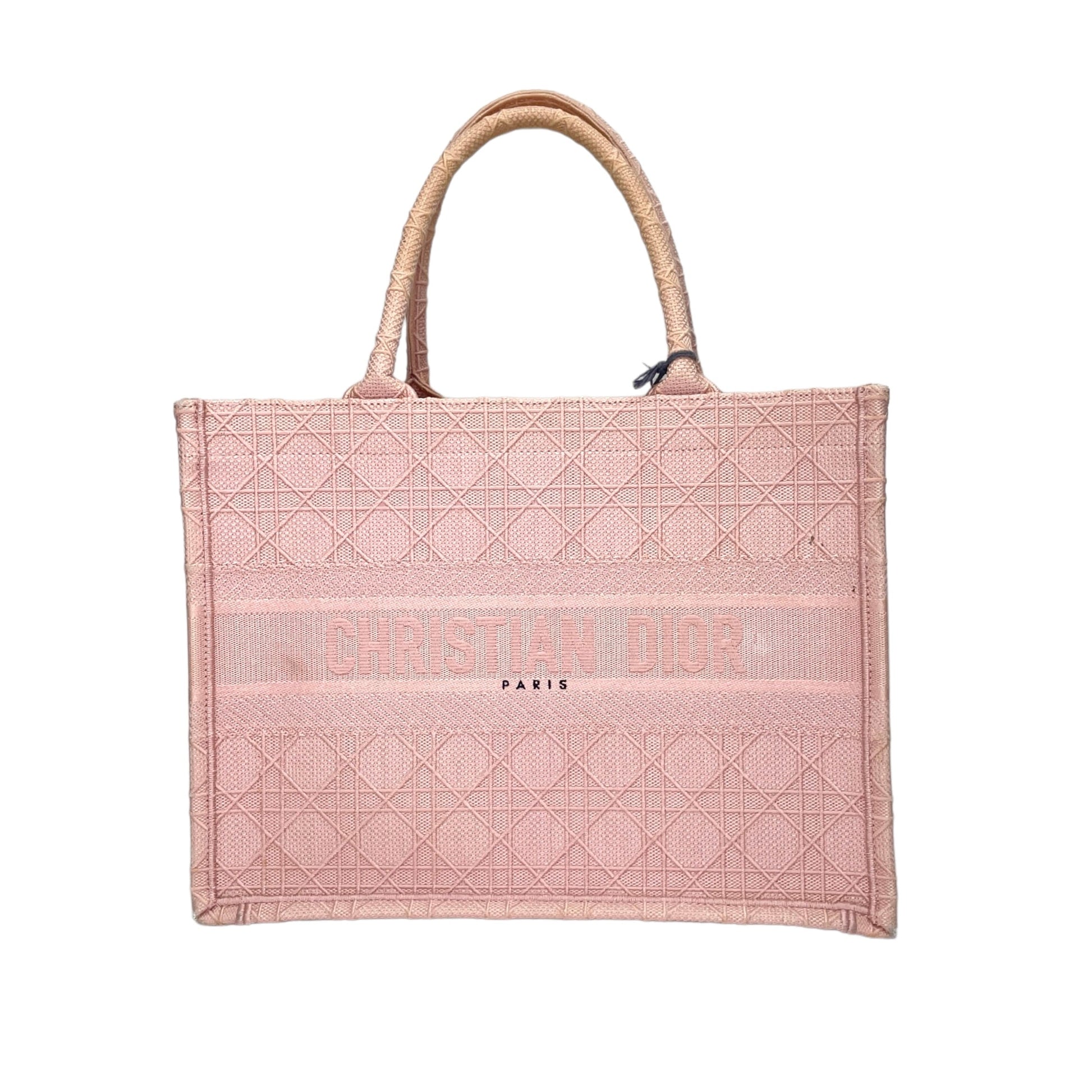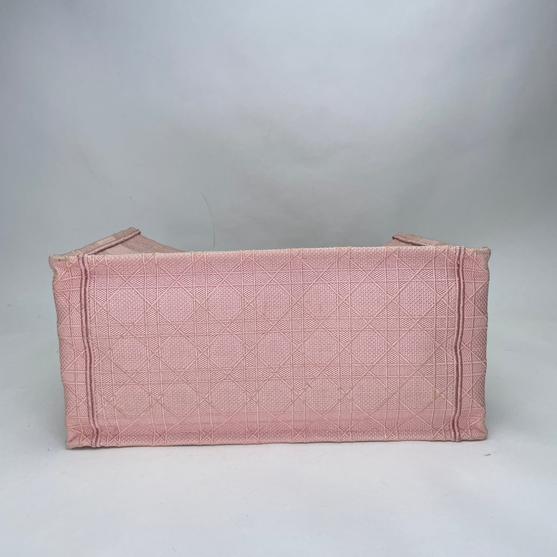 Embroidered Cannage Book Tote Medium Pink Tote Bag in Canvas