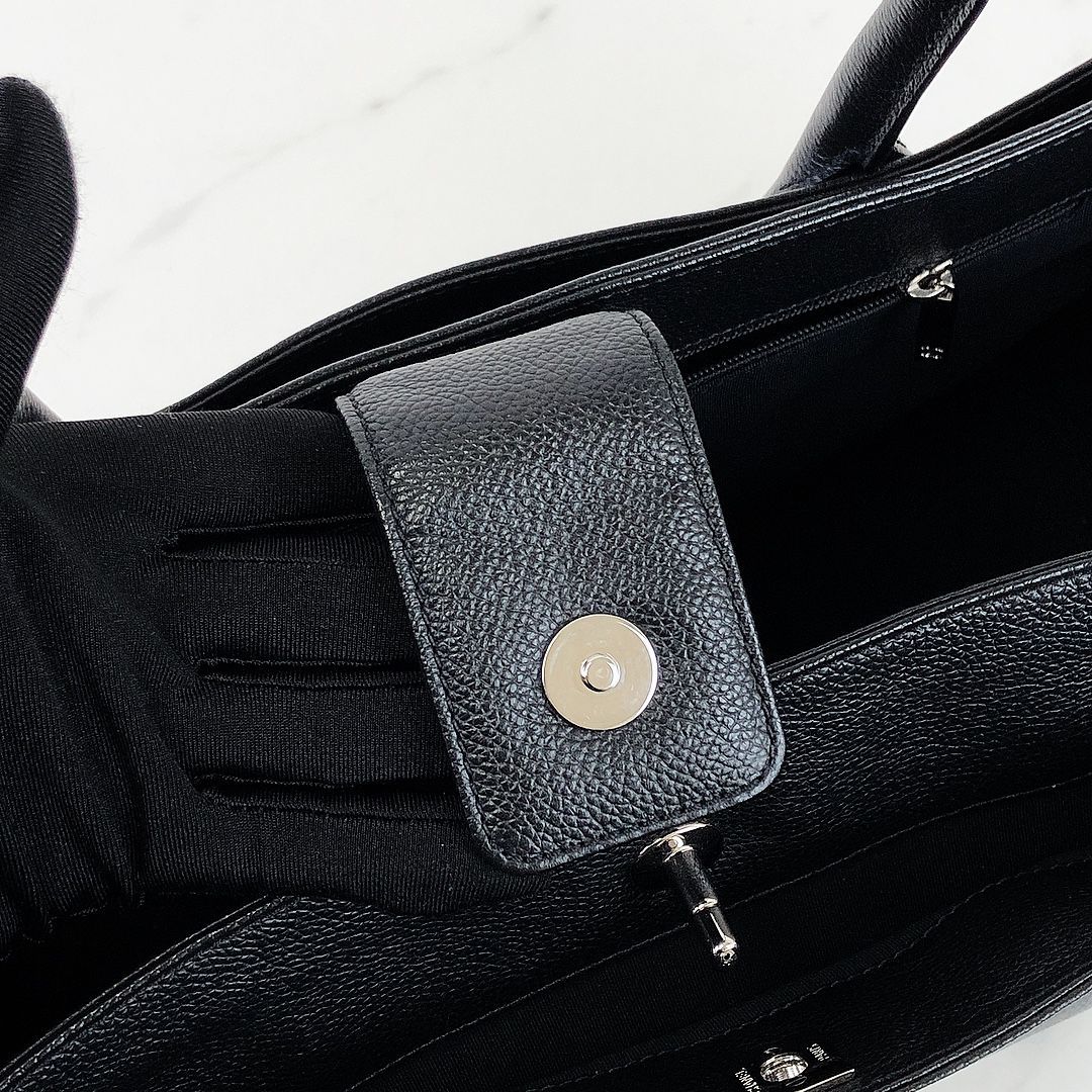This Chanel Executive Cerf Tote is beautifully crafted with classic black caviar leather that is timeless and stylish. It’s accentuated with the signature CC Logo in silver tone hardware. This bag features a generous storage for all your essentials. Be practical and stylish in Chanel!