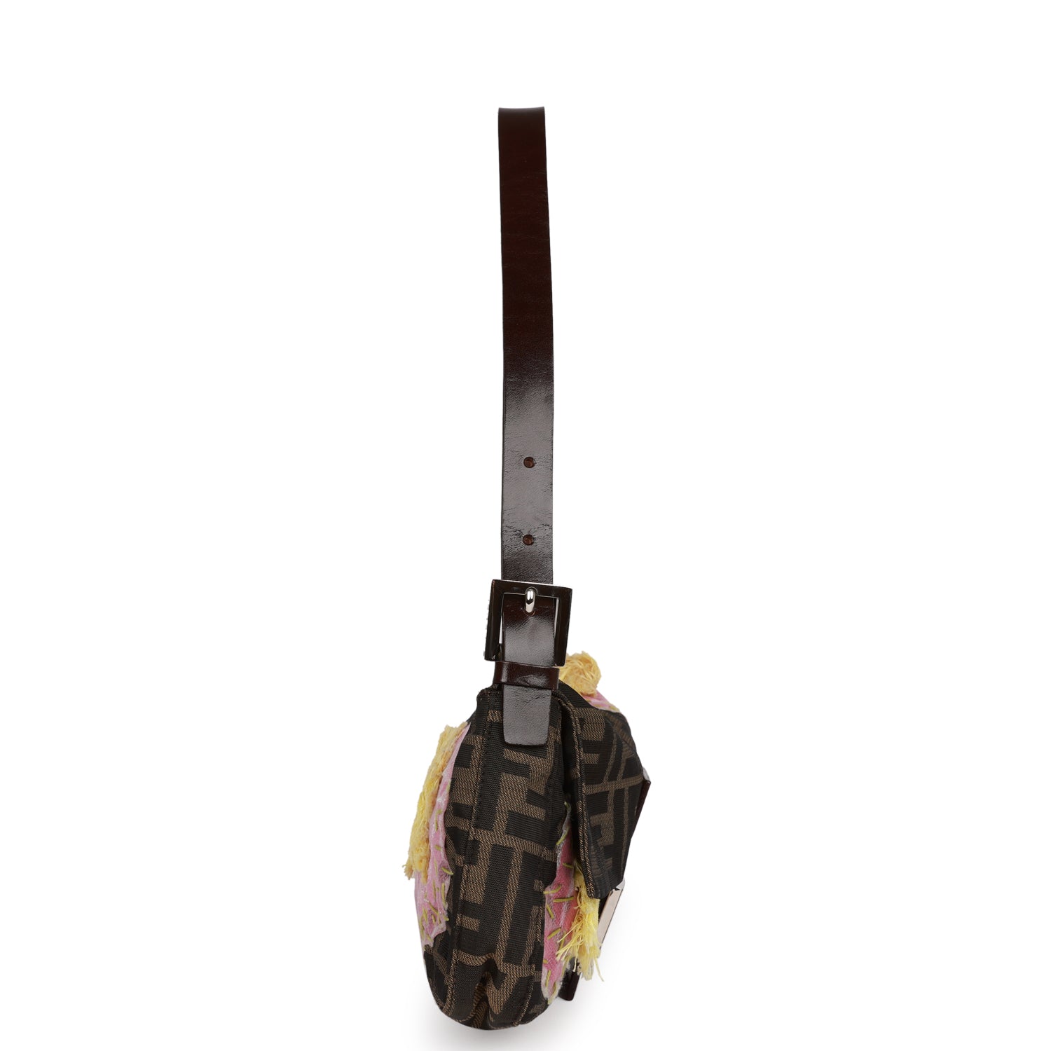 Vintage Fendi Baguette Bag Brown Flower Applique Silver Hardware