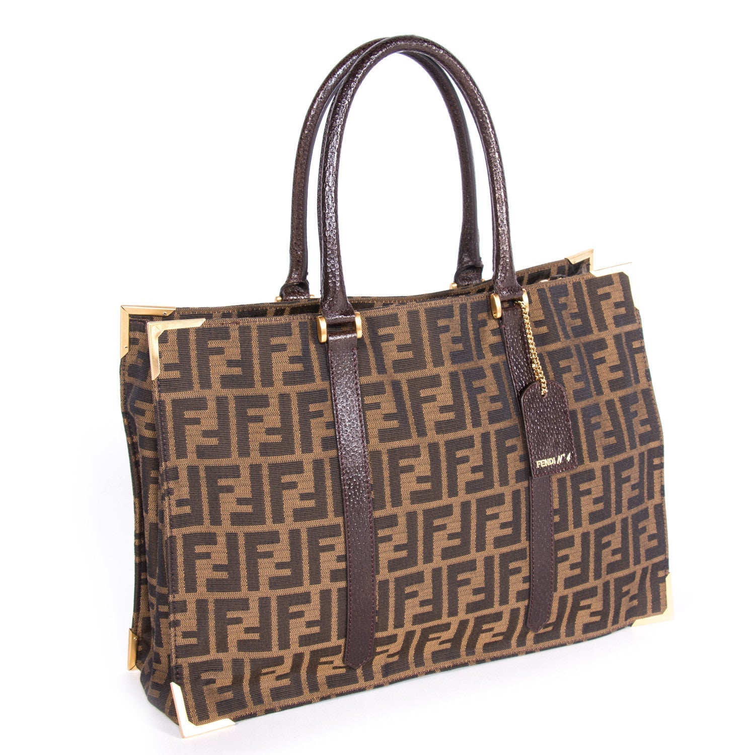 Details: Brown Canvas With The Signature Zucca Pattern / Gold Tone Metal Framing On Edges / Brown Leather Trim / Dual Rolled Handles / Brown Leather Interior Lining / Three Compartments, One With Zip Closure / Open Top / Removable Fendi No. 4 Tag