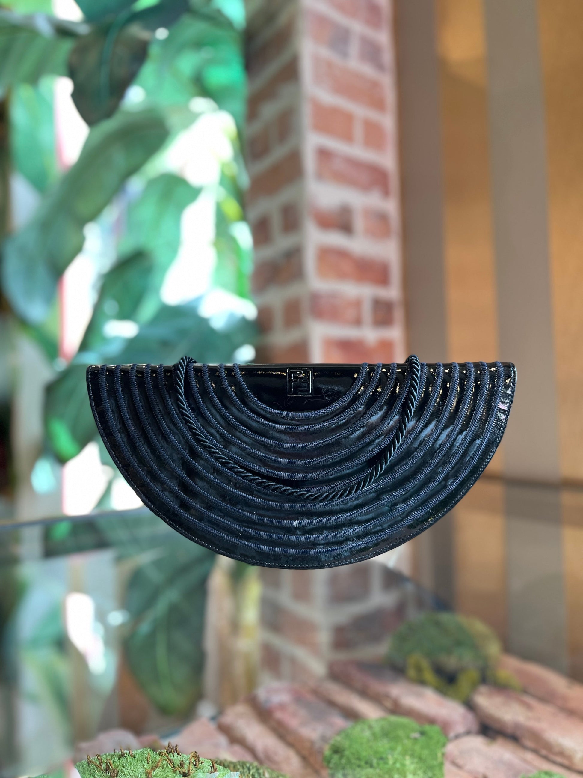 A modern classic, this shoulder bag features glossy black patent leather with subtle Fendi logo detailing. The structured flap design and sleek silhouette offer effortless sophistication for any occasion. B- Good Overall Condition