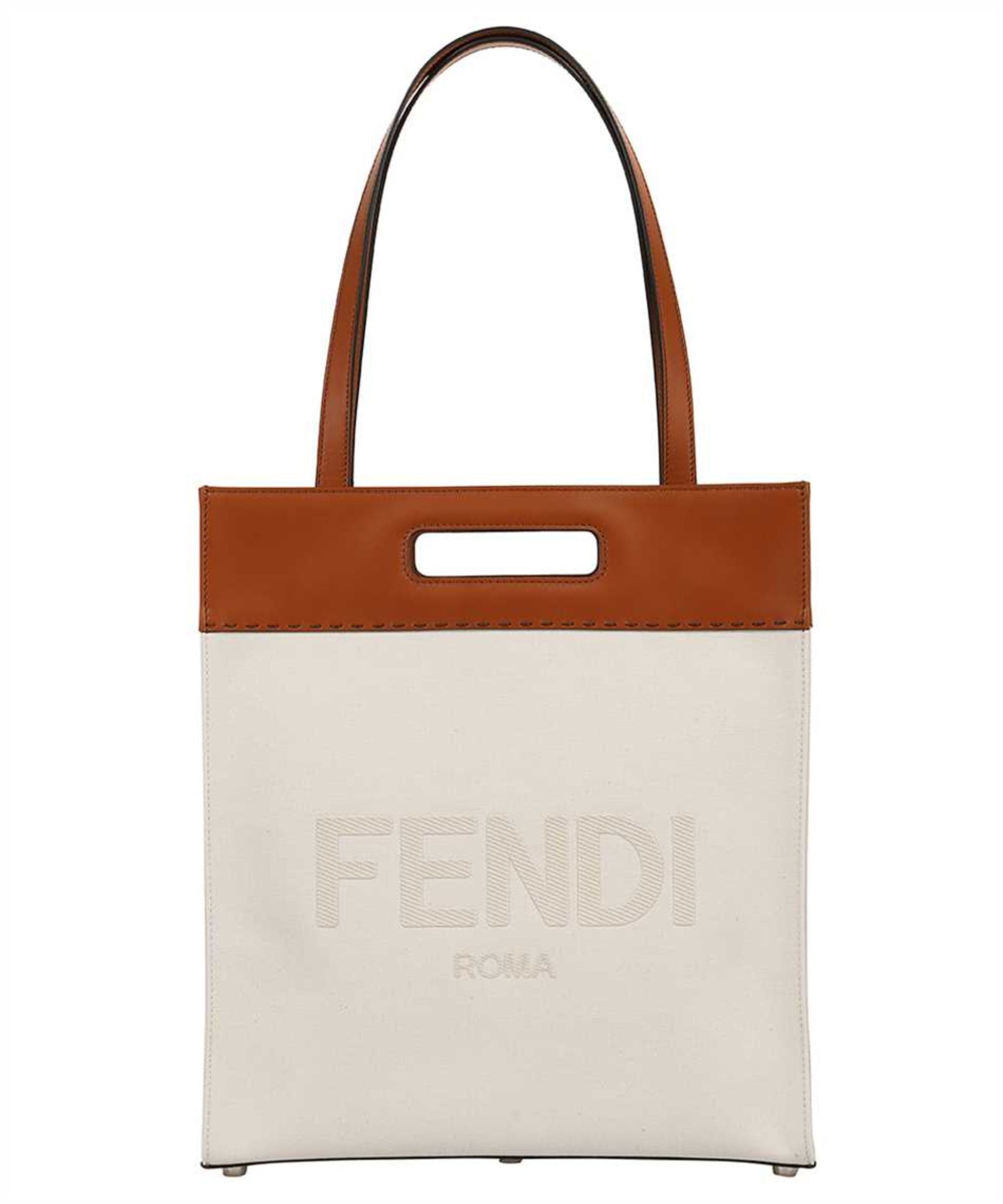 Fendi Roma Brand Embroidered Canvas And Leather Tote Bag