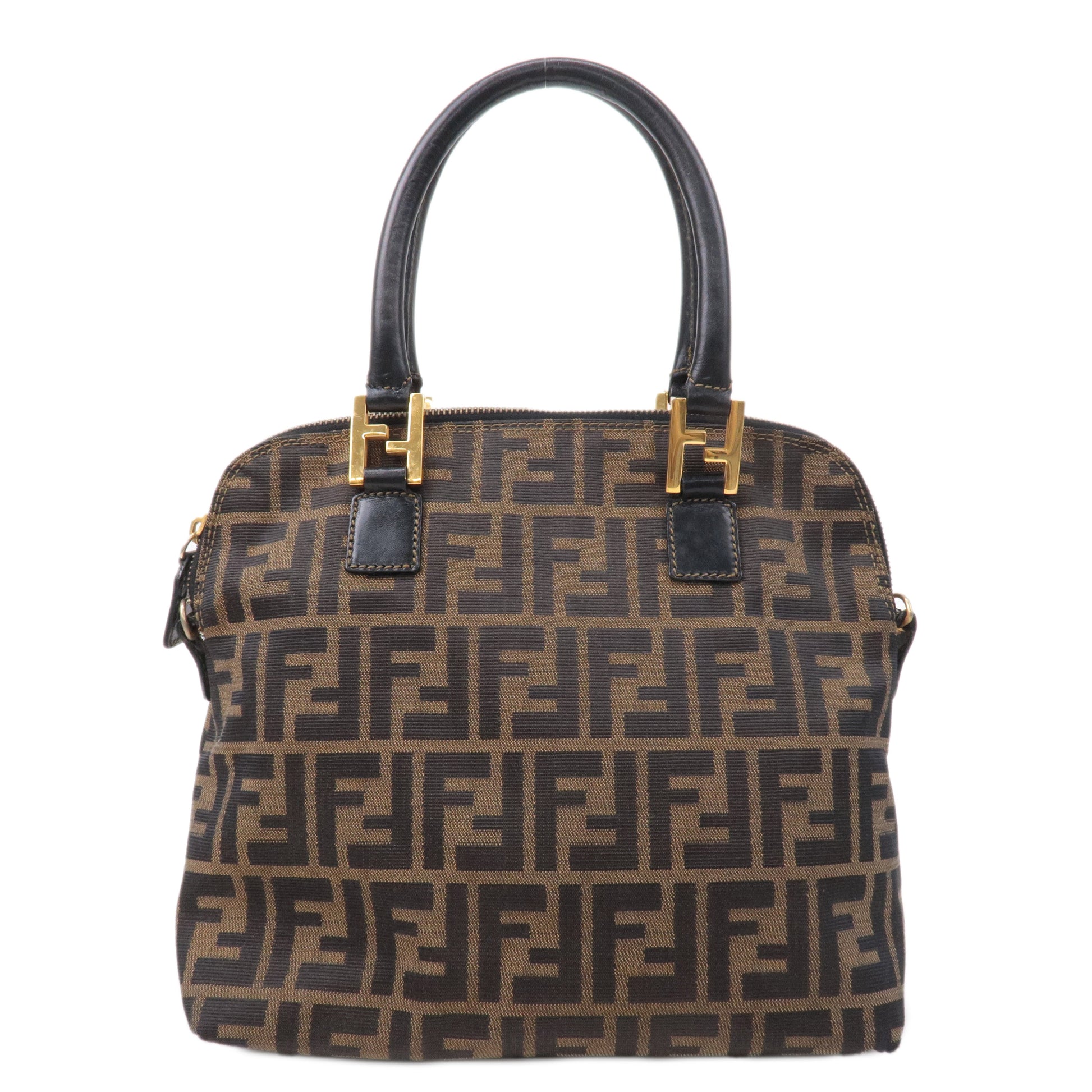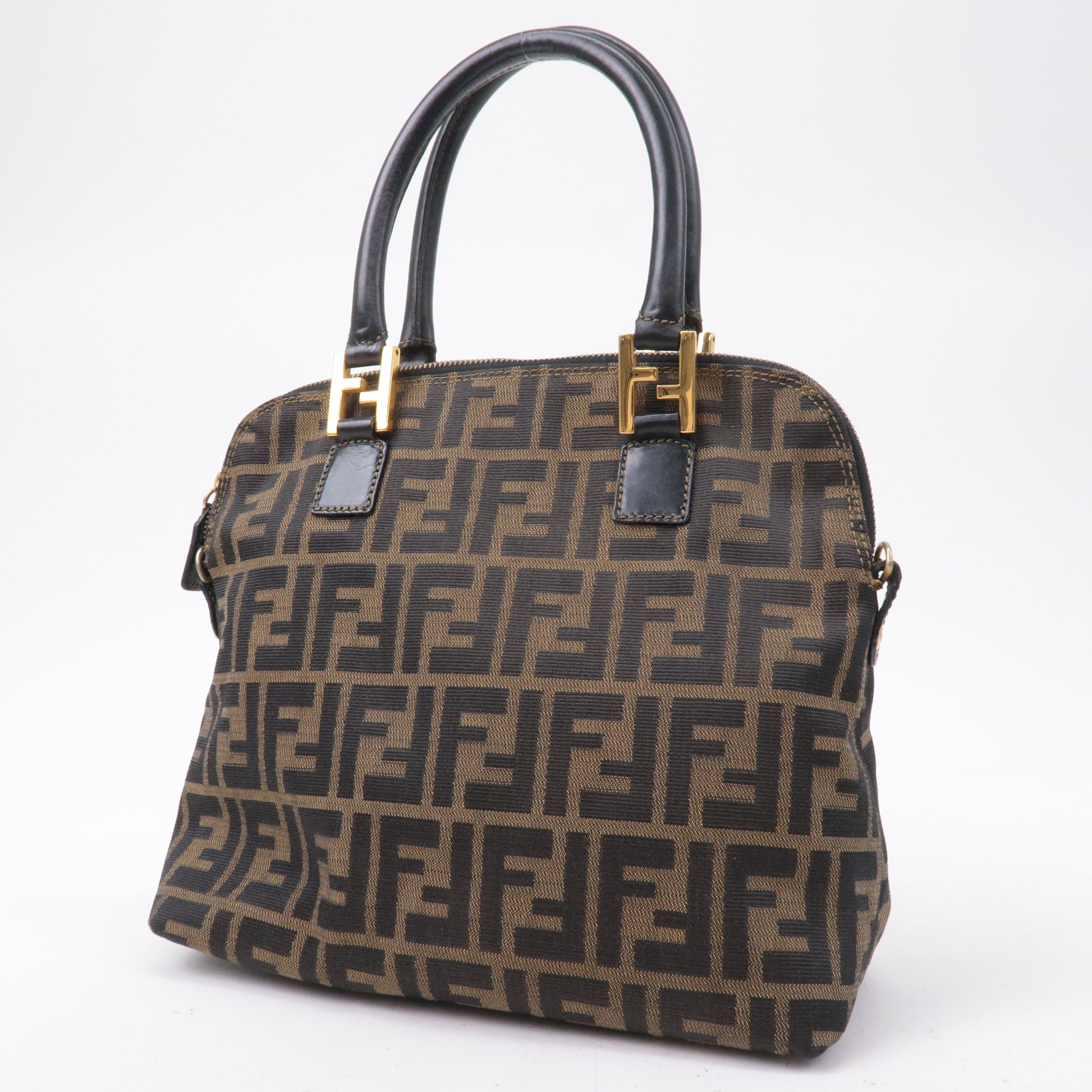 FENDI Zucca Canvas Leather Hand Bag Tote Bag Khaki Black