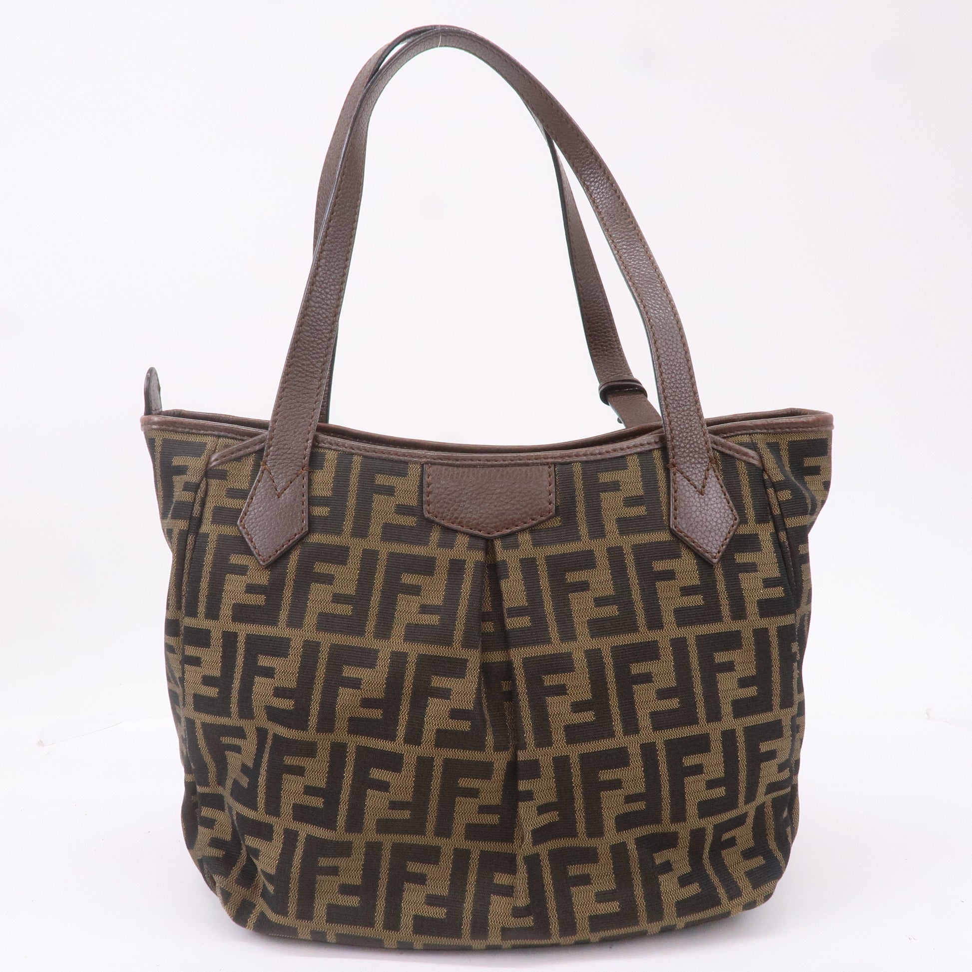 FENDI Zucca Canvas Leather Tote Bag Shoulder Bag 8BH268