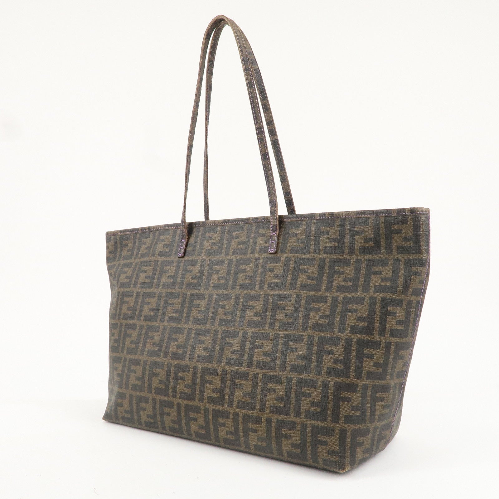 FENDI Zucca Logo Print PVC Tote Bag Brown Black Purple 8BH185