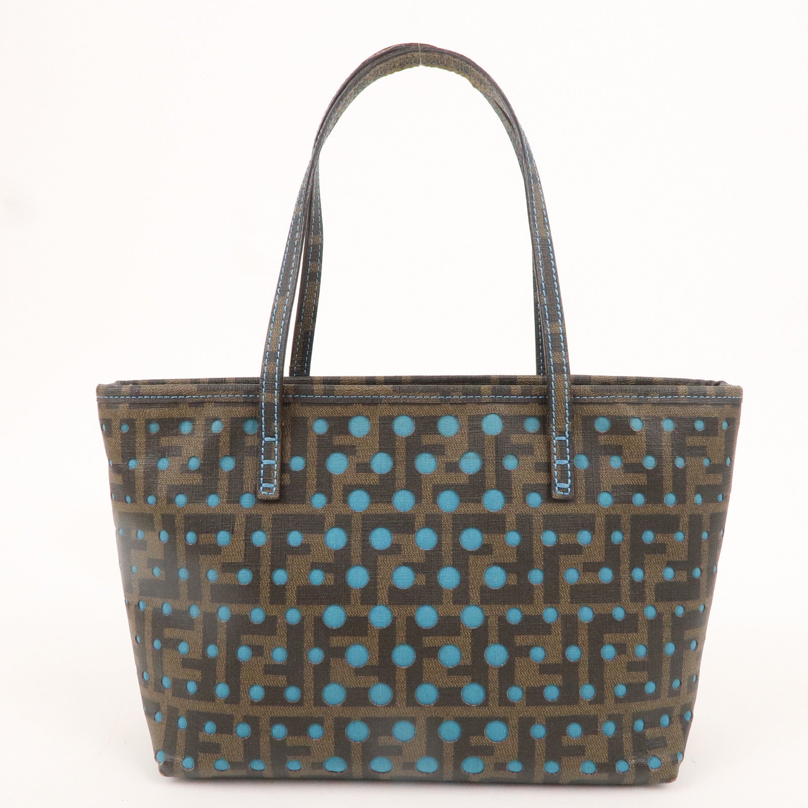 FENDI Zucca Logo Print PVC Tote Bag Khaki Black Blue 8BH223