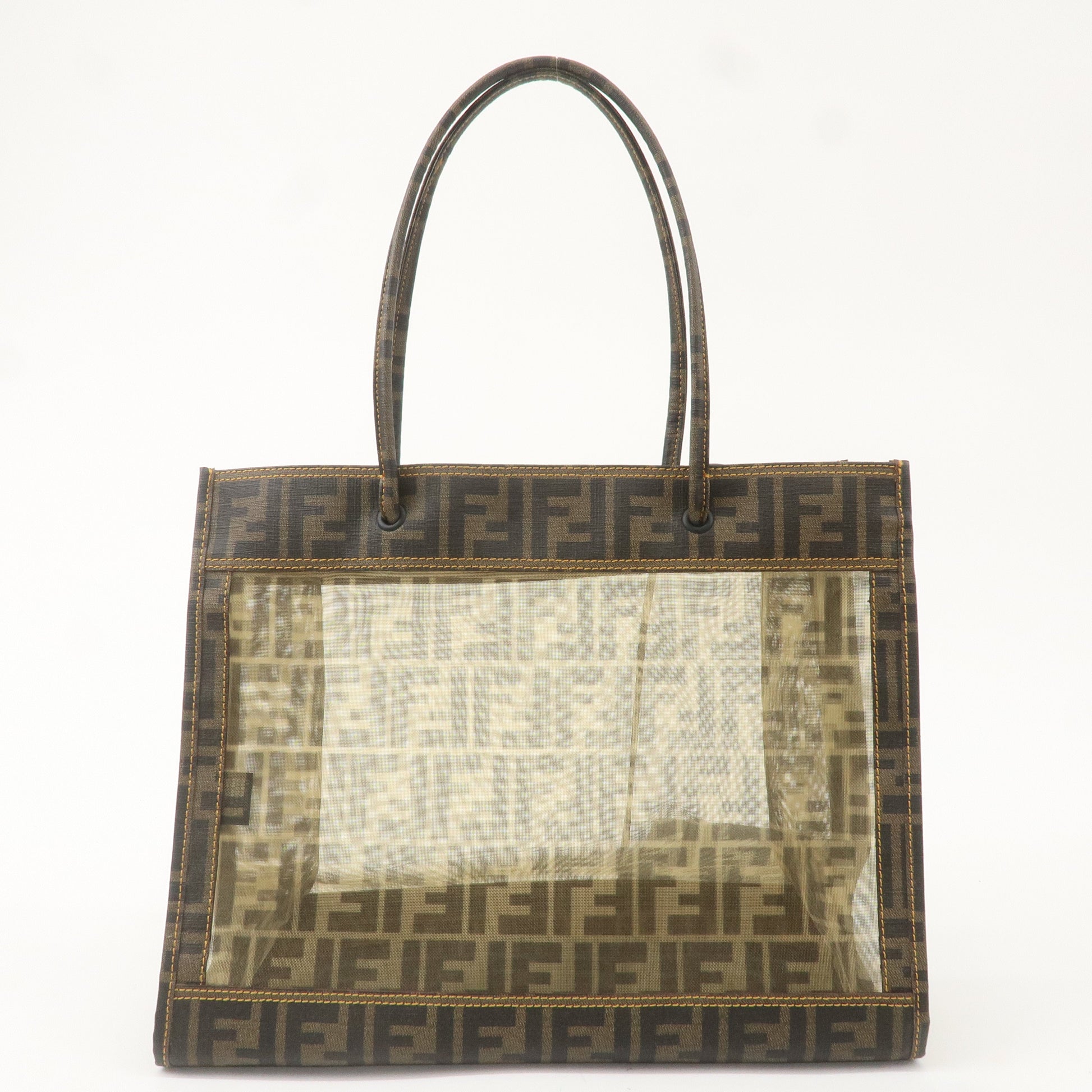 FENDI Zucca Mesh PVC Tote Bag Hand Bag Brown Black 8BH183