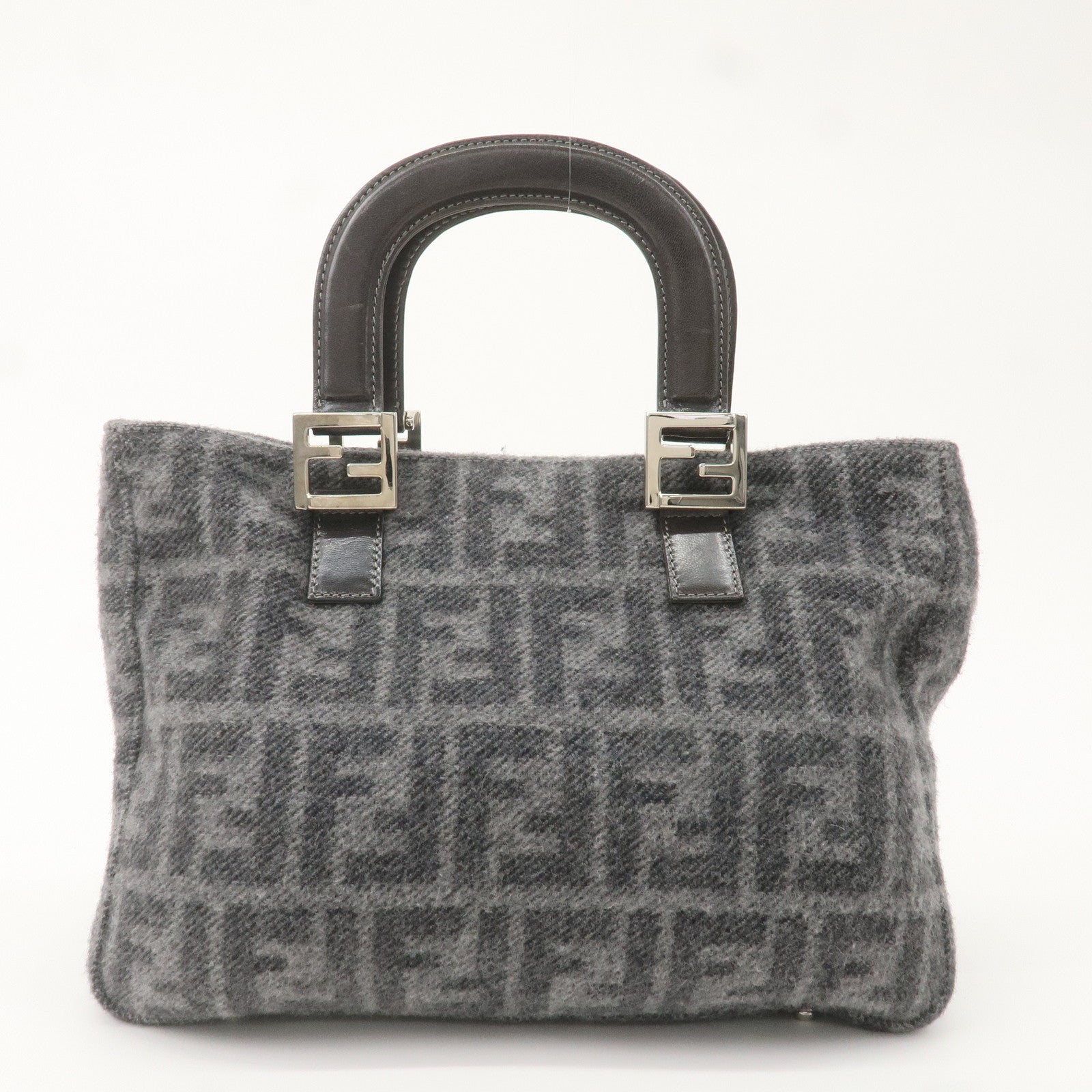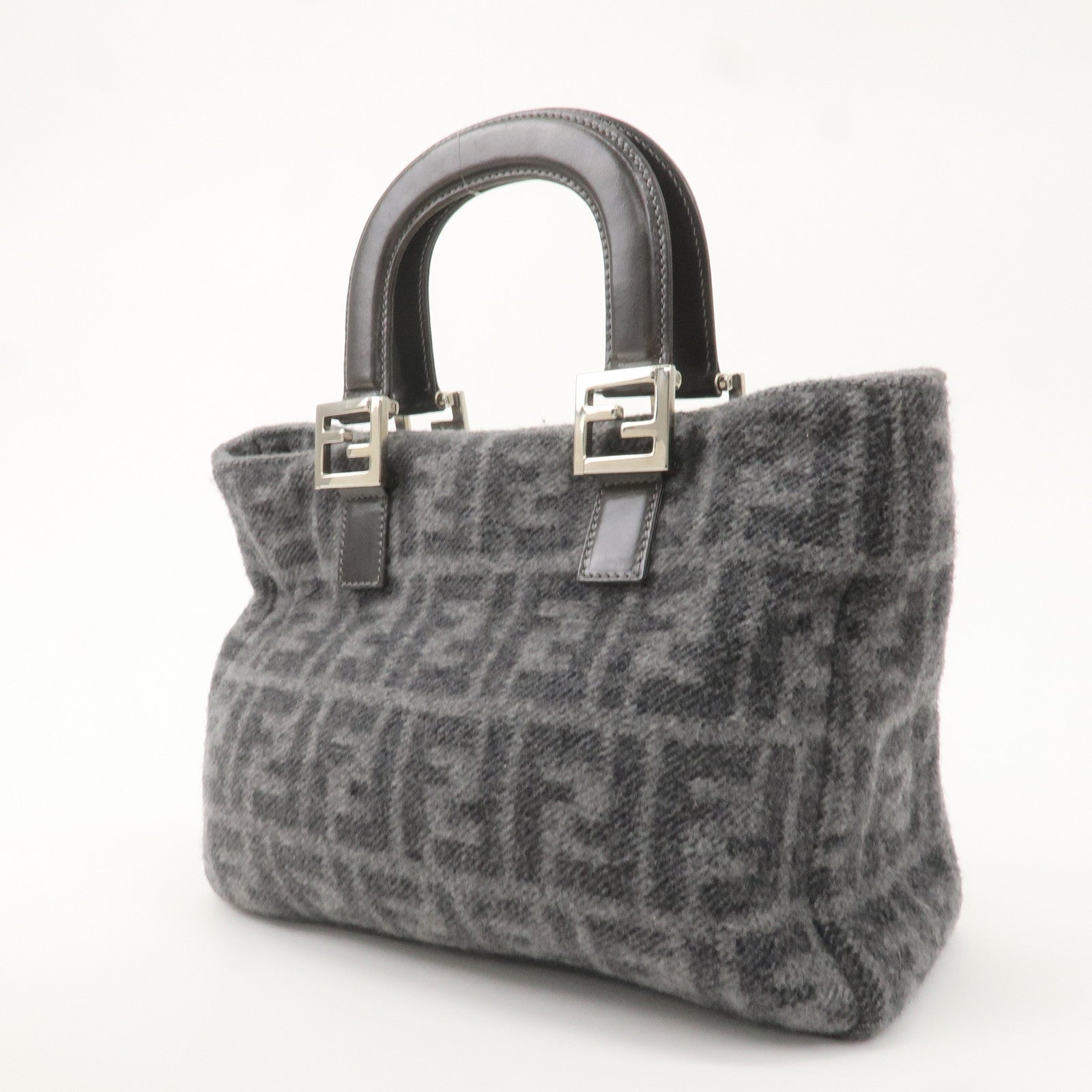 FENDI Zucca Print Wool Leather Knit Hand Bag Tote Bag 26329 Gray