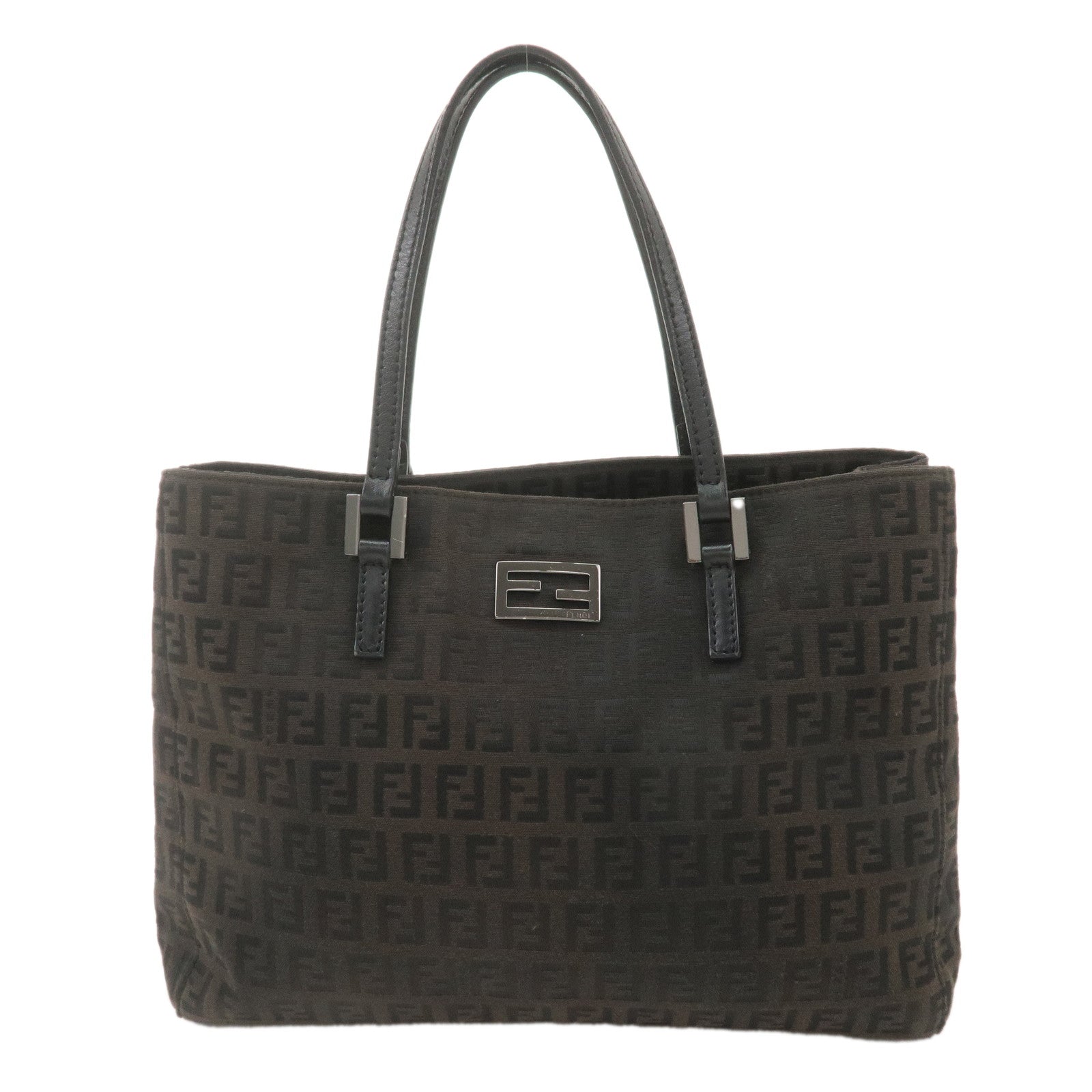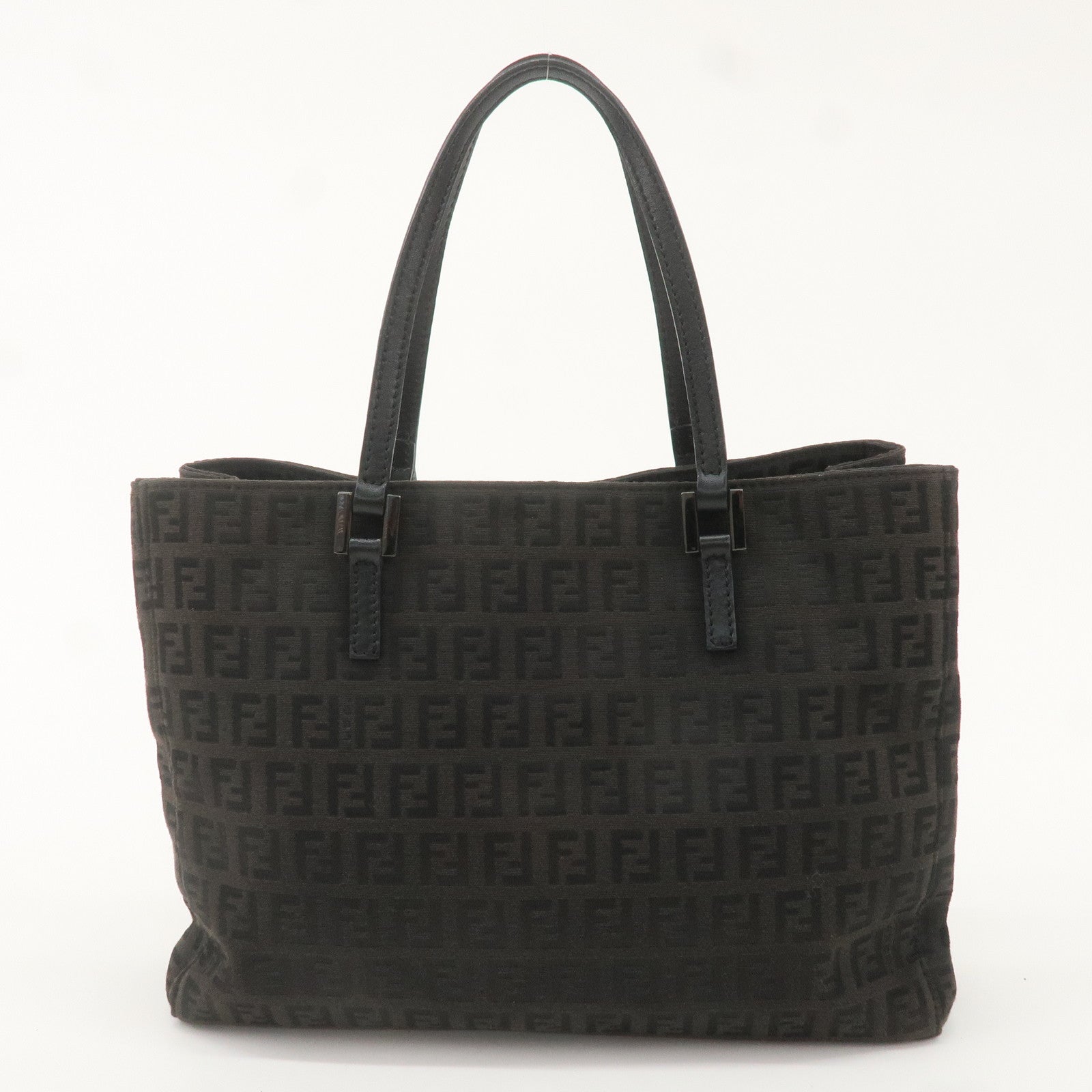 FENDI Zucchino Canvas Leather Hand Bag Small Tote Bag Black 8BH132