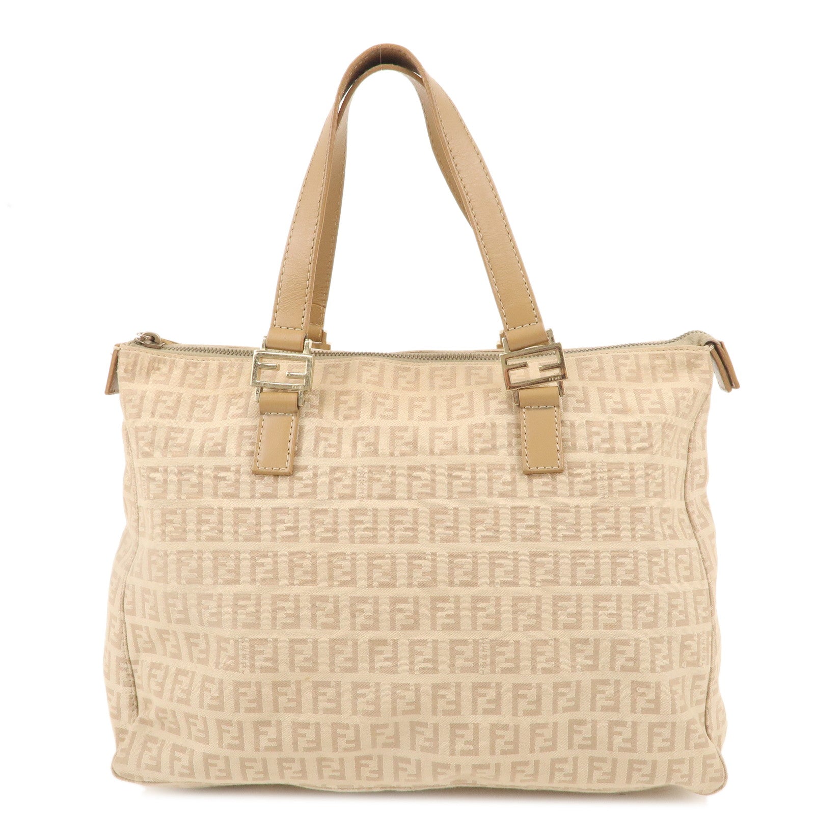 FENDI Zucchino Canvas Leather Hand Bag Tote Bag Beige 8BH138