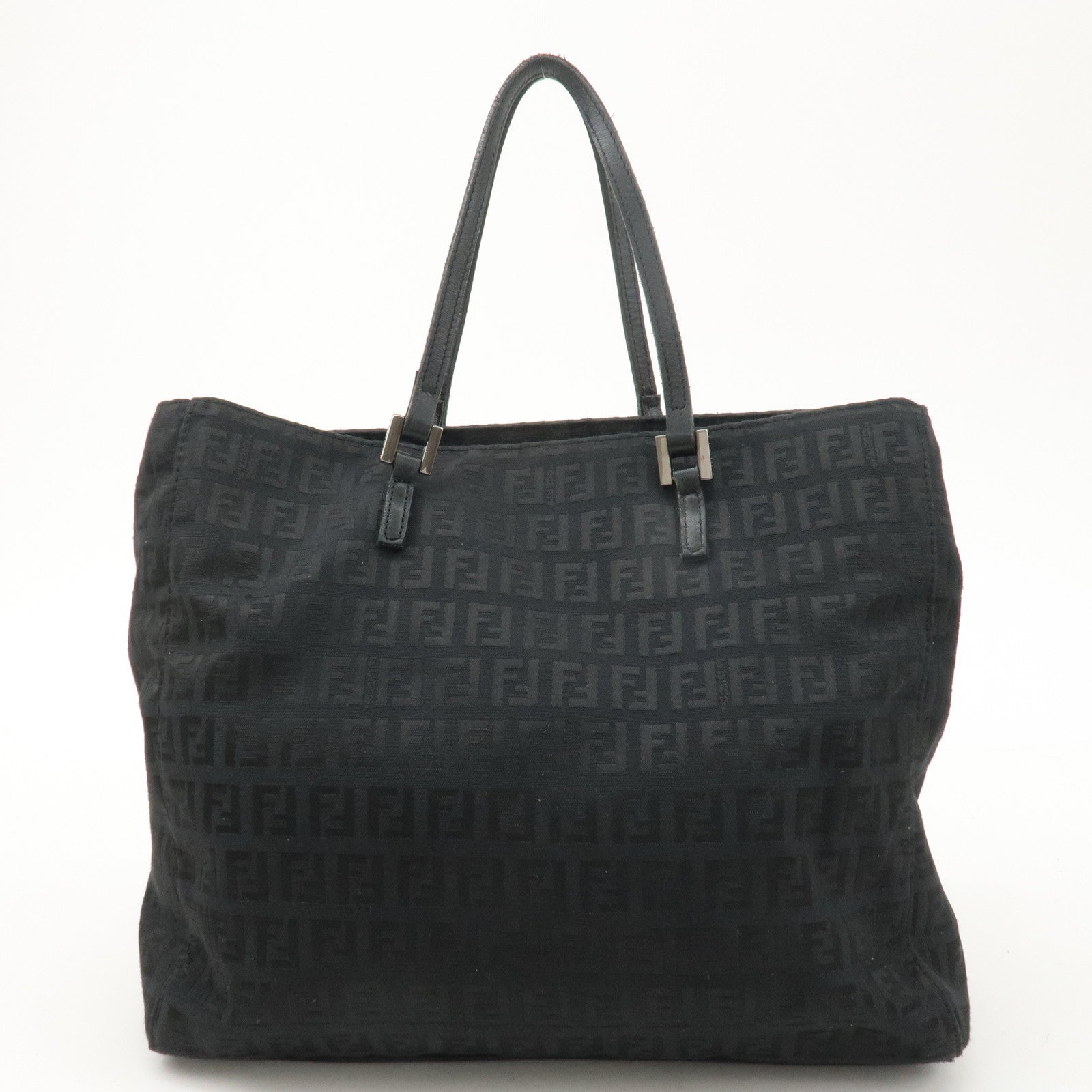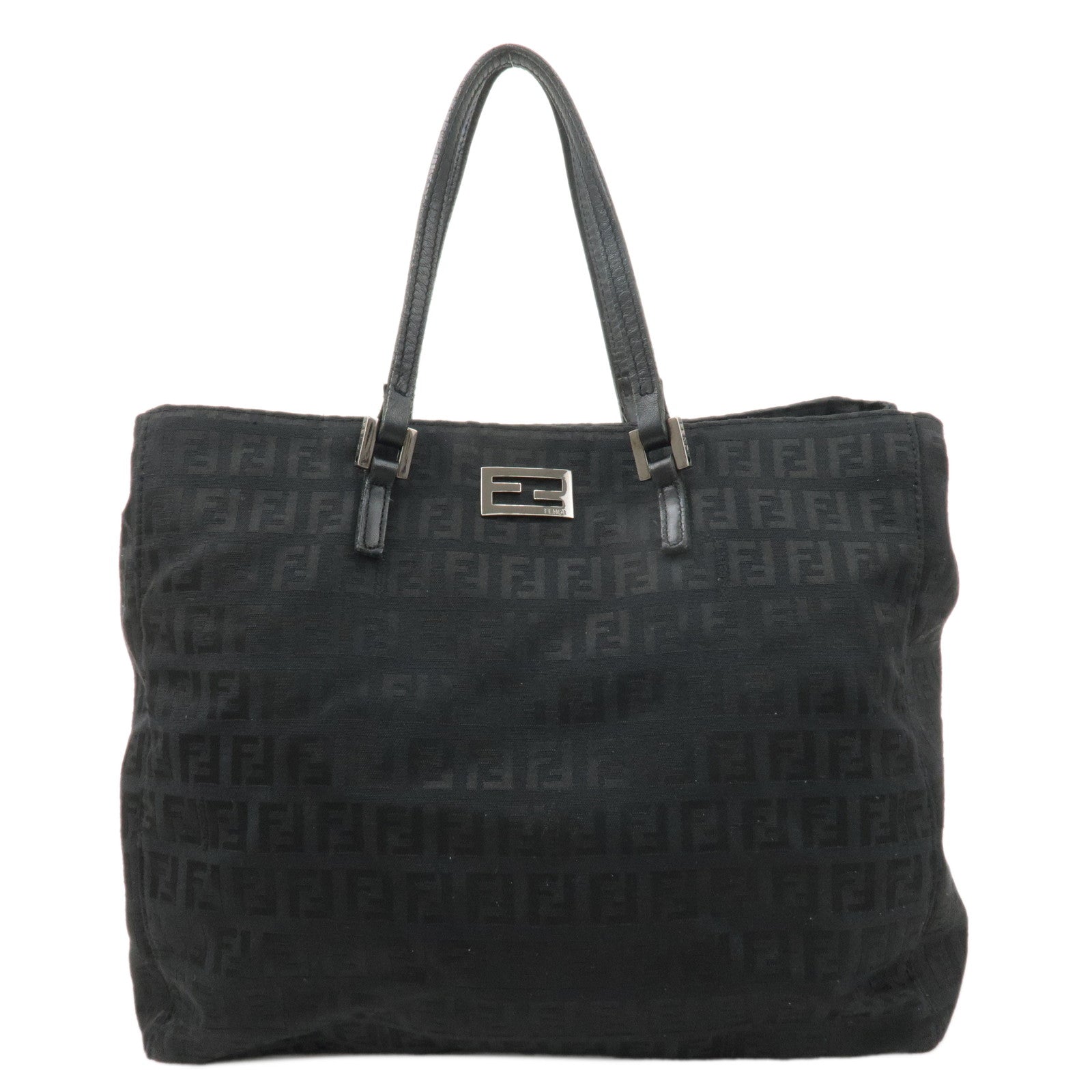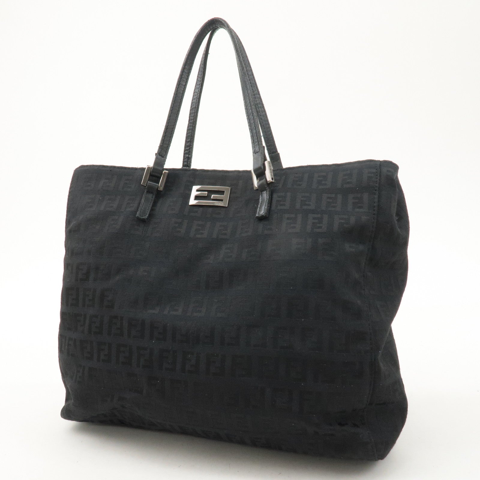 FENDI Zucchino Canvas Leather Hand Bag Tote Bag Black 8BH133