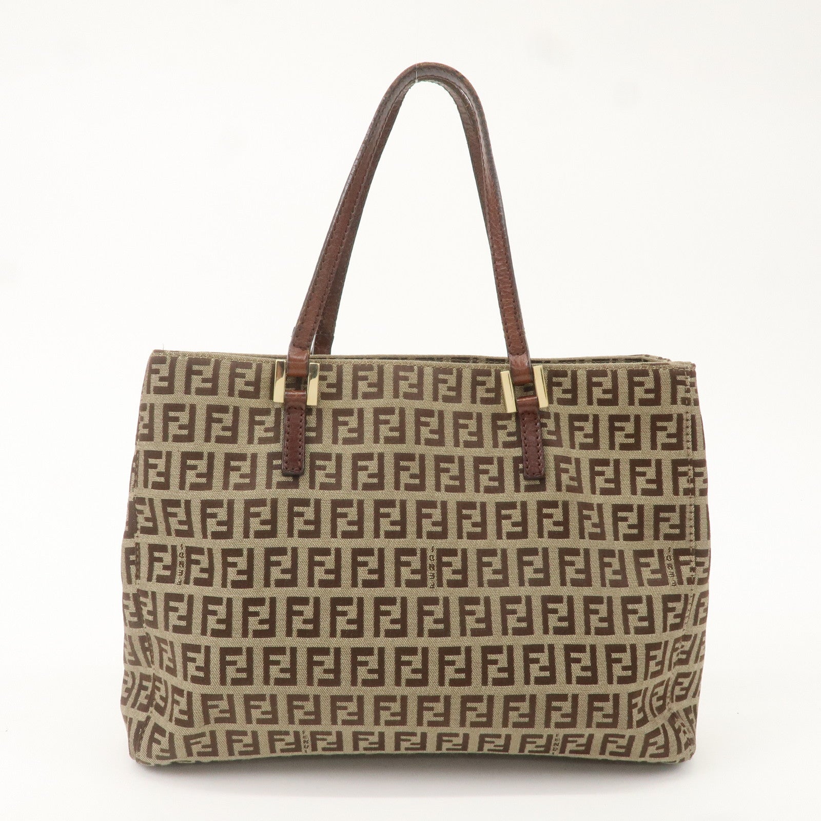 FENDI Zucchino Canvas Leather Mini Tote Bag Beige Brown 8BH132