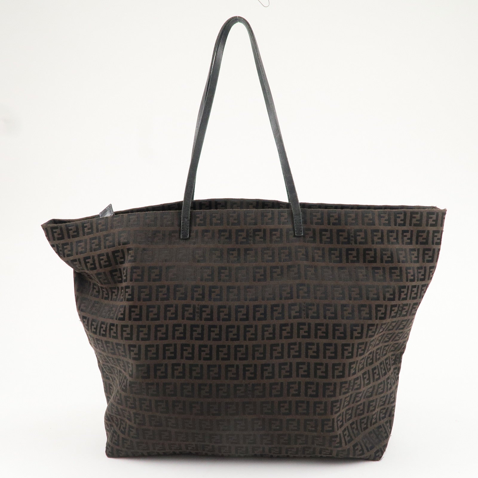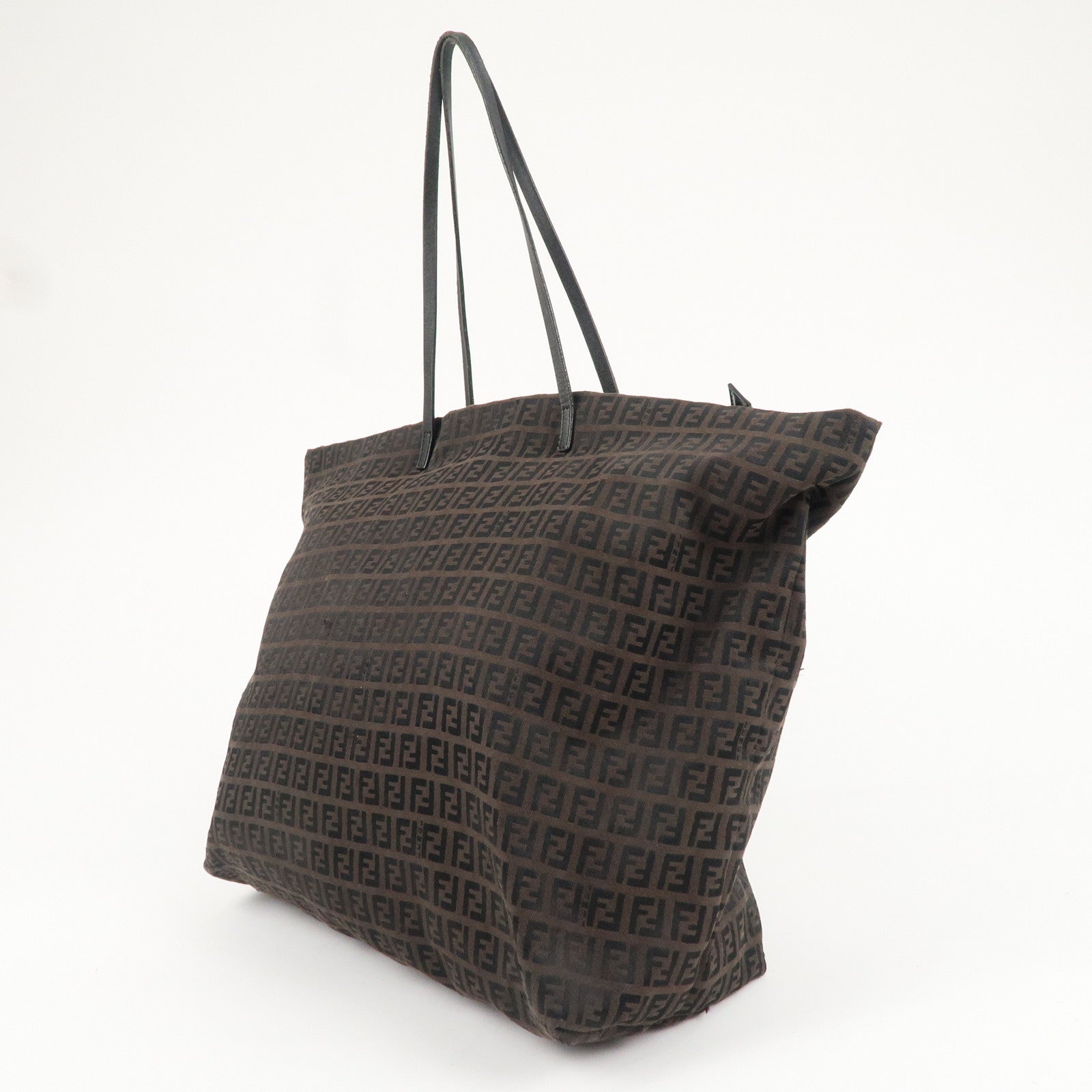 FENDI Zucchino Canvas Leather Tote Bag Black Brown 8BH026
