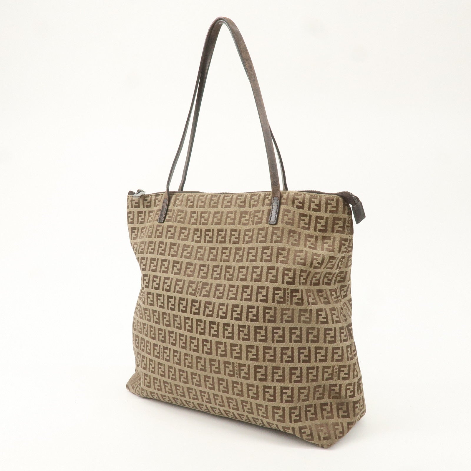FENDI Zucchino Canvas Leather Tote Bag Brown Beige 8BH024