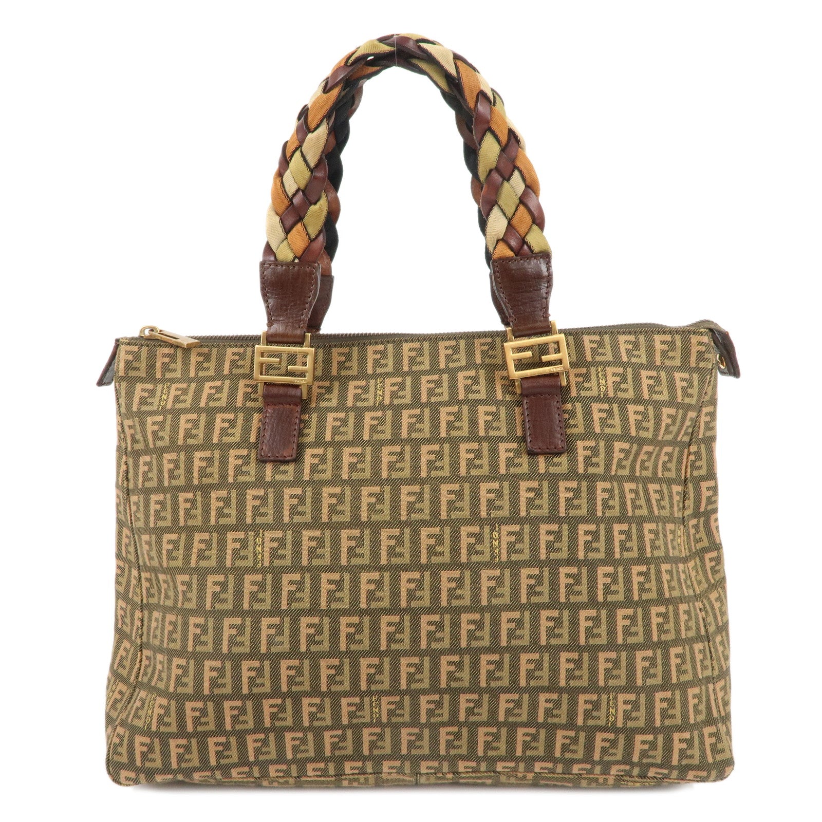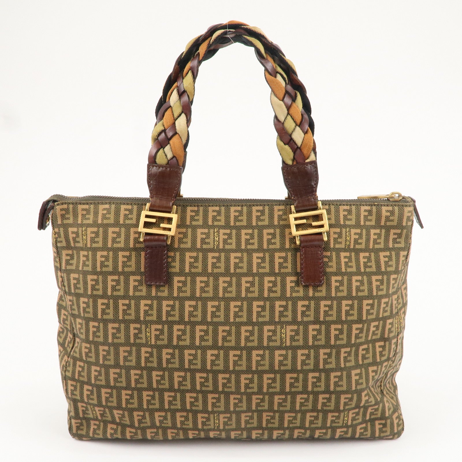 FENDI Zucchino Canvas Leather Tote Bag Khaki Brown 8BH138