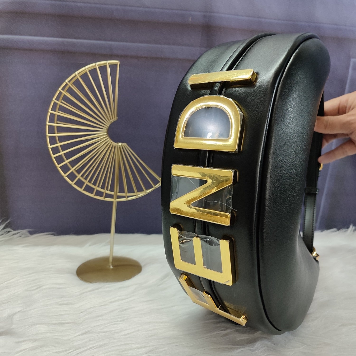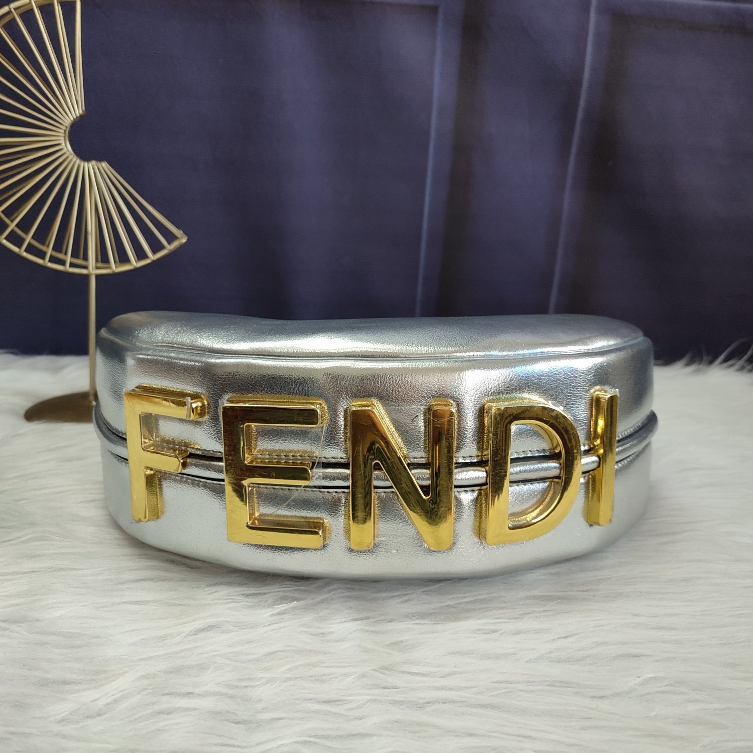 Design: Small Hobo bag with vintage gold Metal FENDI lettering Visible when the bag is worn under the arm.Very style and personality!