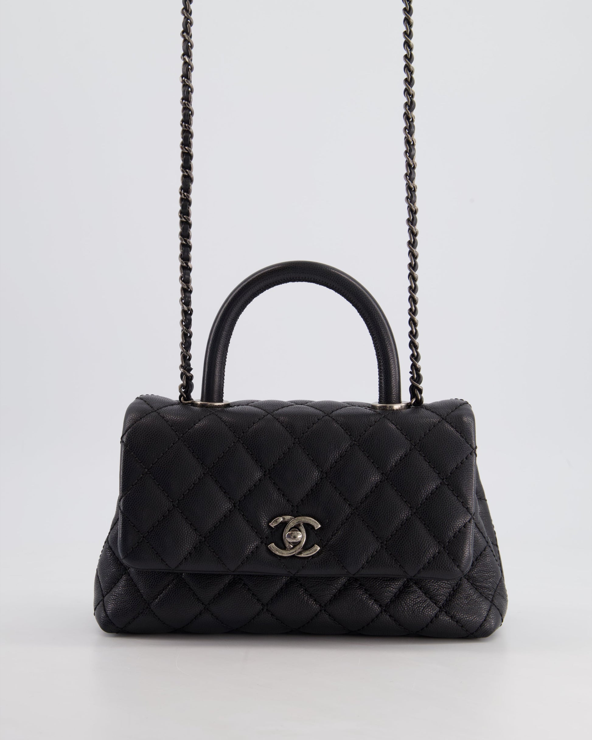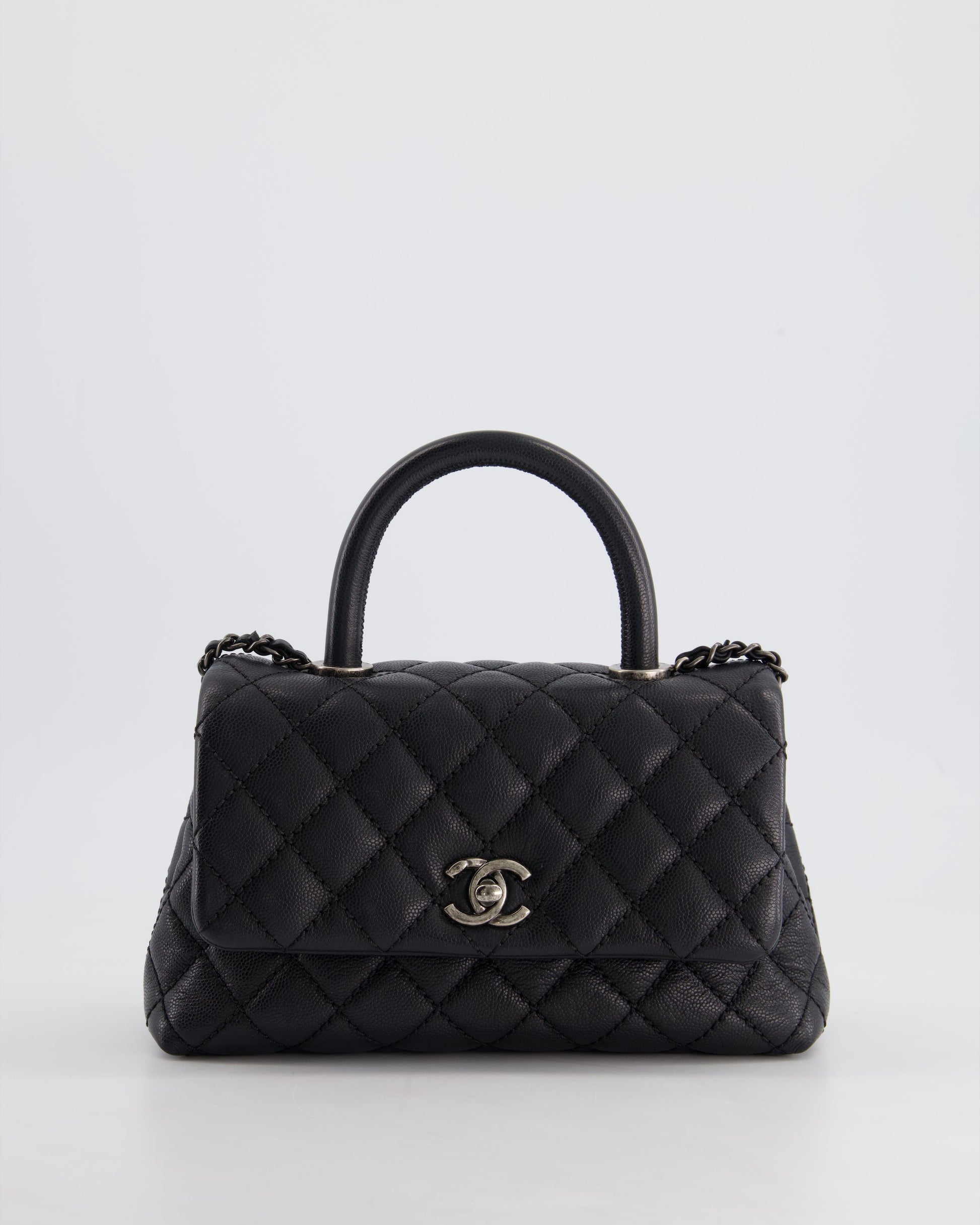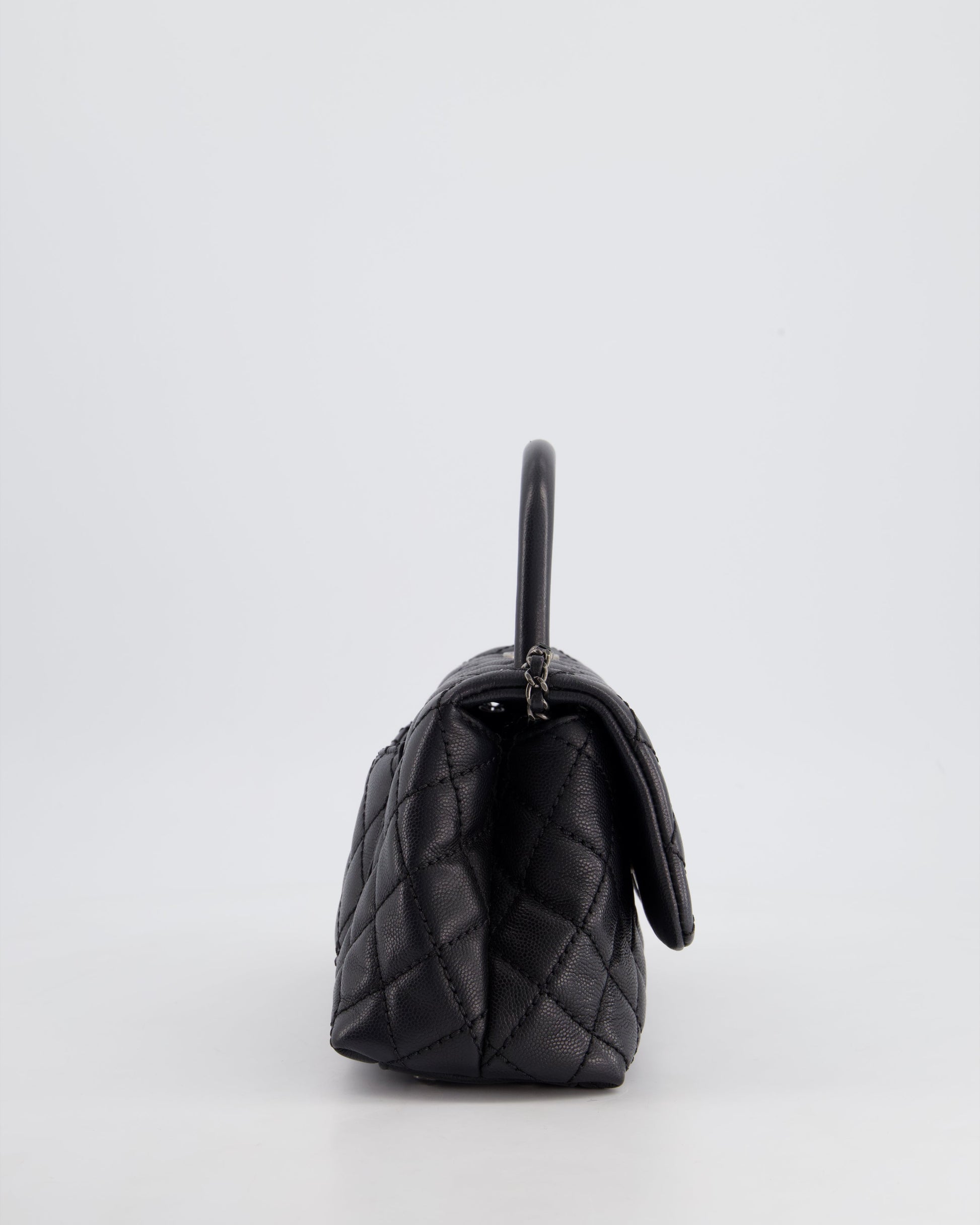 *FIRE PRICE* Chanel Black Small Caviar Quilted Coco Handle Flap Bag with Black Calfskin Handle and Ruthenium Hardware