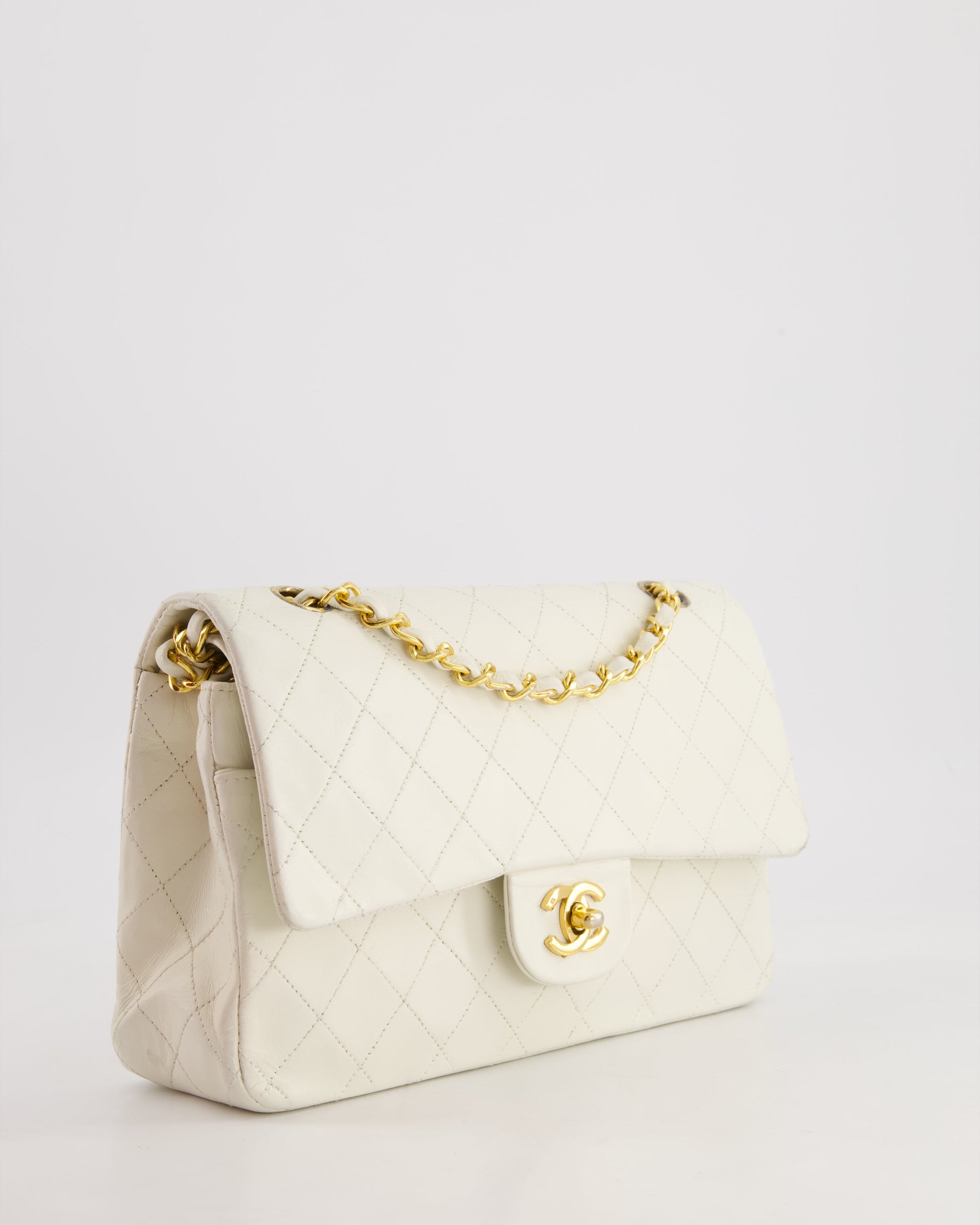 *FIRE PRICE* Chanel Vintage White Medium Classic Double Flap Bag in Lambskin Leather with 24K Gold Hardware