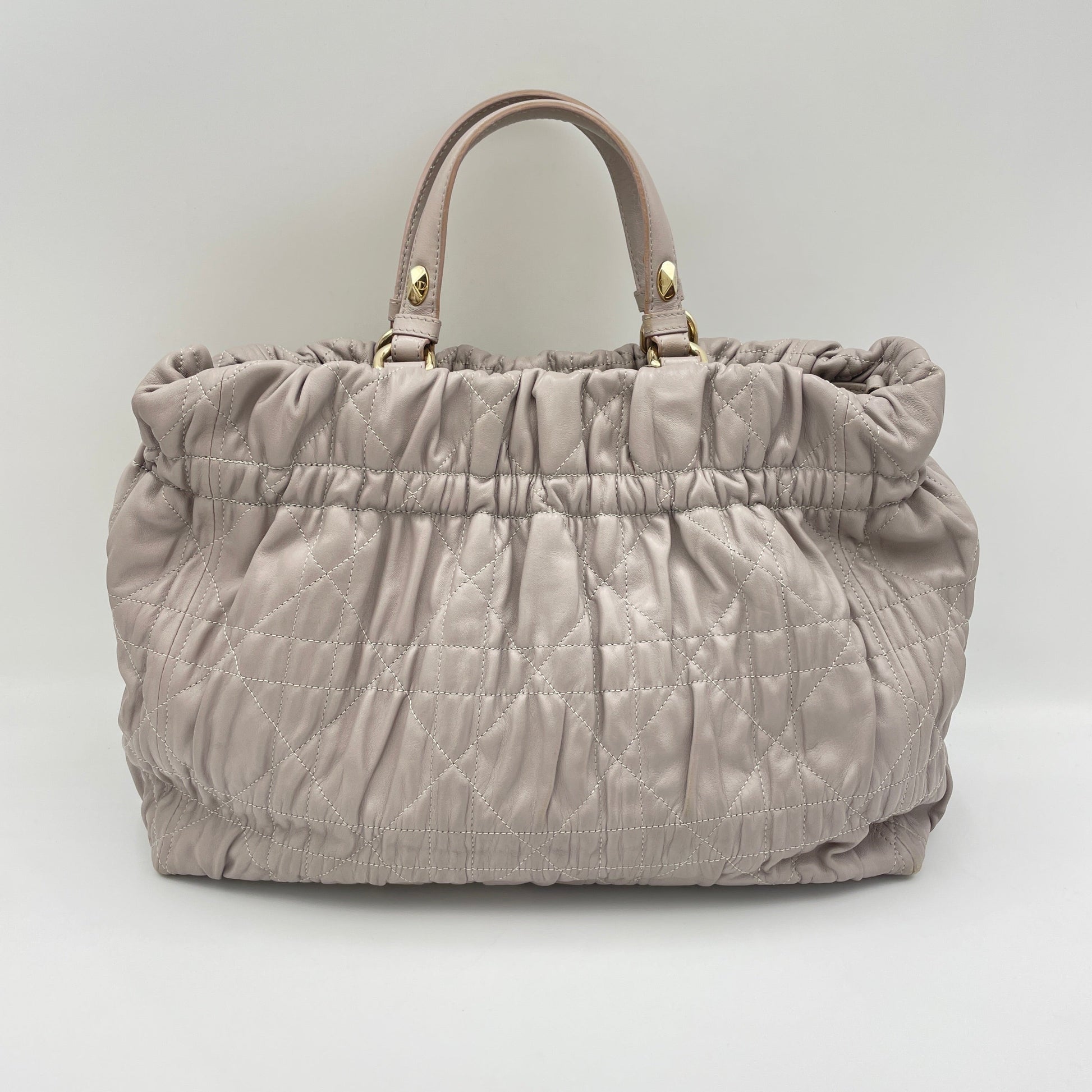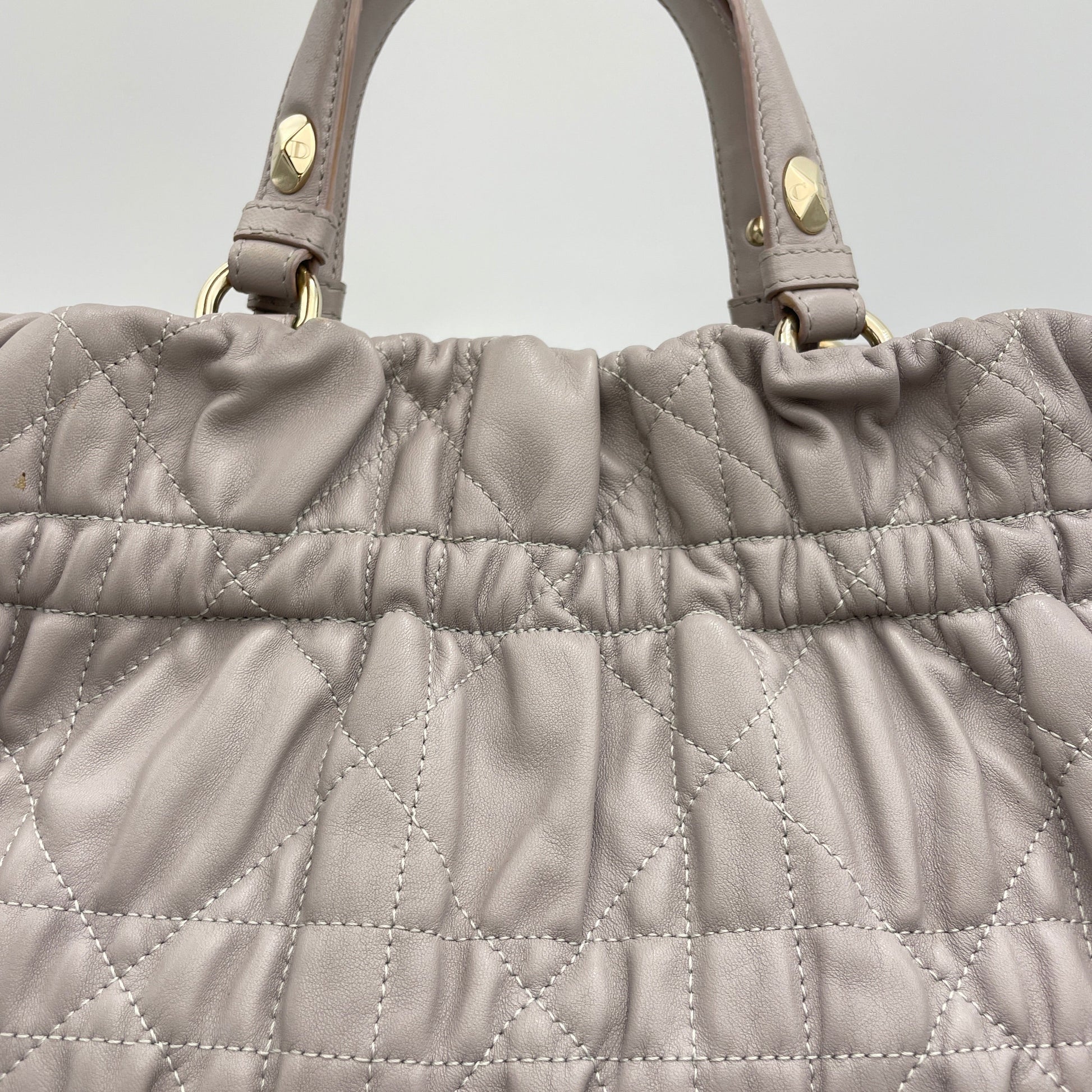 Gaufre Cannage Grey Tote Bag in Lambskin, Light Gold hardware