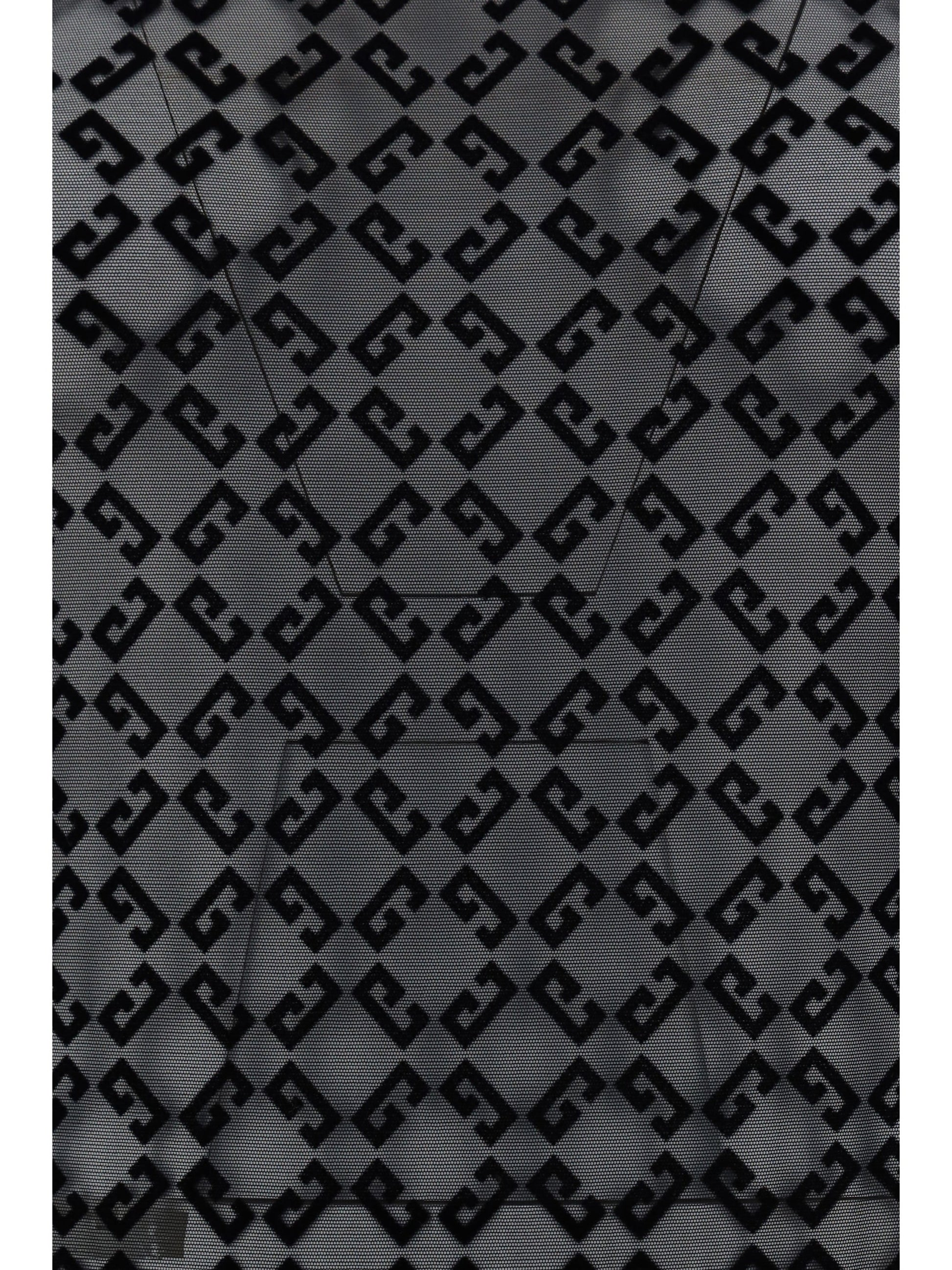 Bodysuit by Givenchy, semi-transparent stretch design, mock neck, long sleeves, iconic all-over printed brand logo, snap-button closure, slim fit.