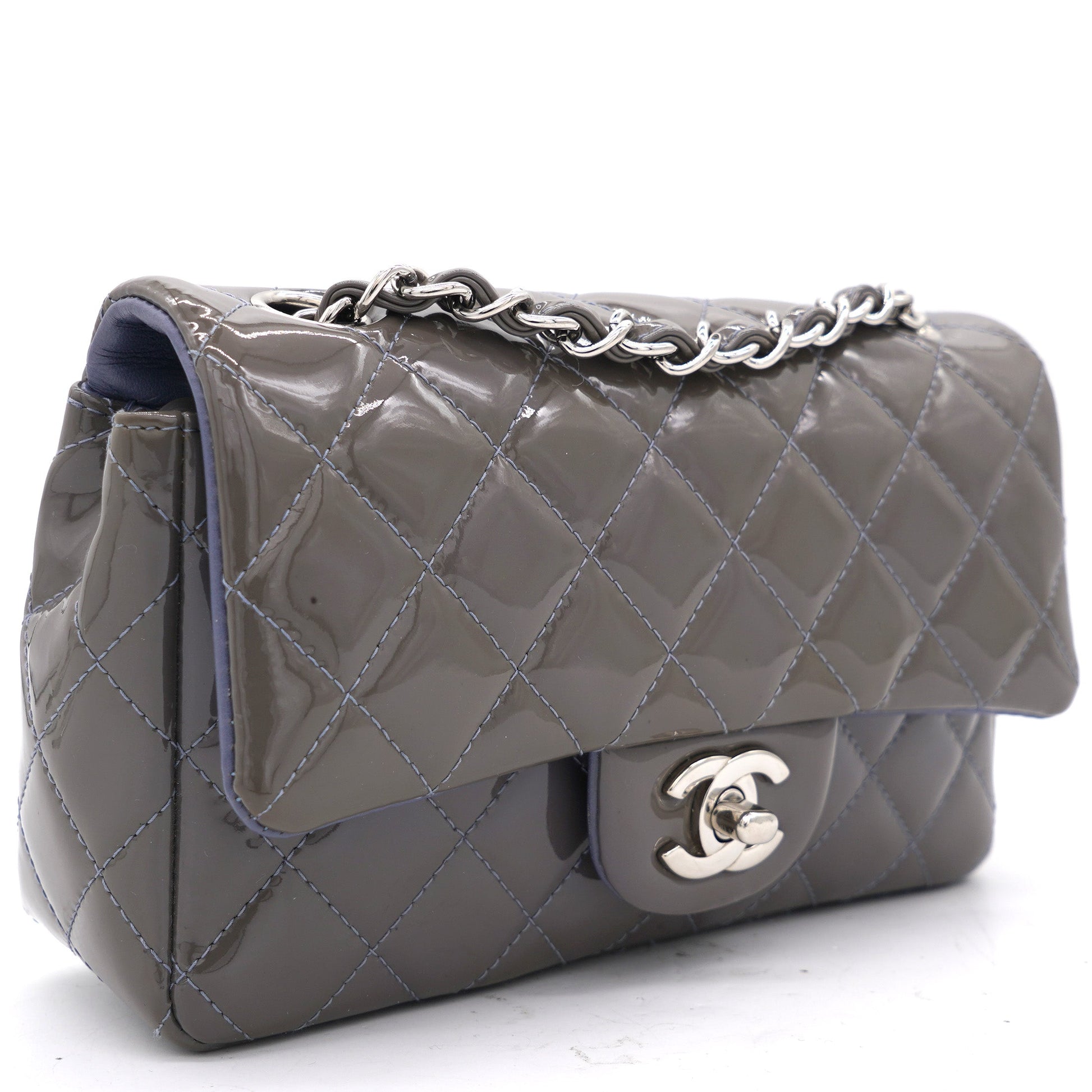 Chanel Grey Classic Patent Leather Rectangular Mini Flap Bag