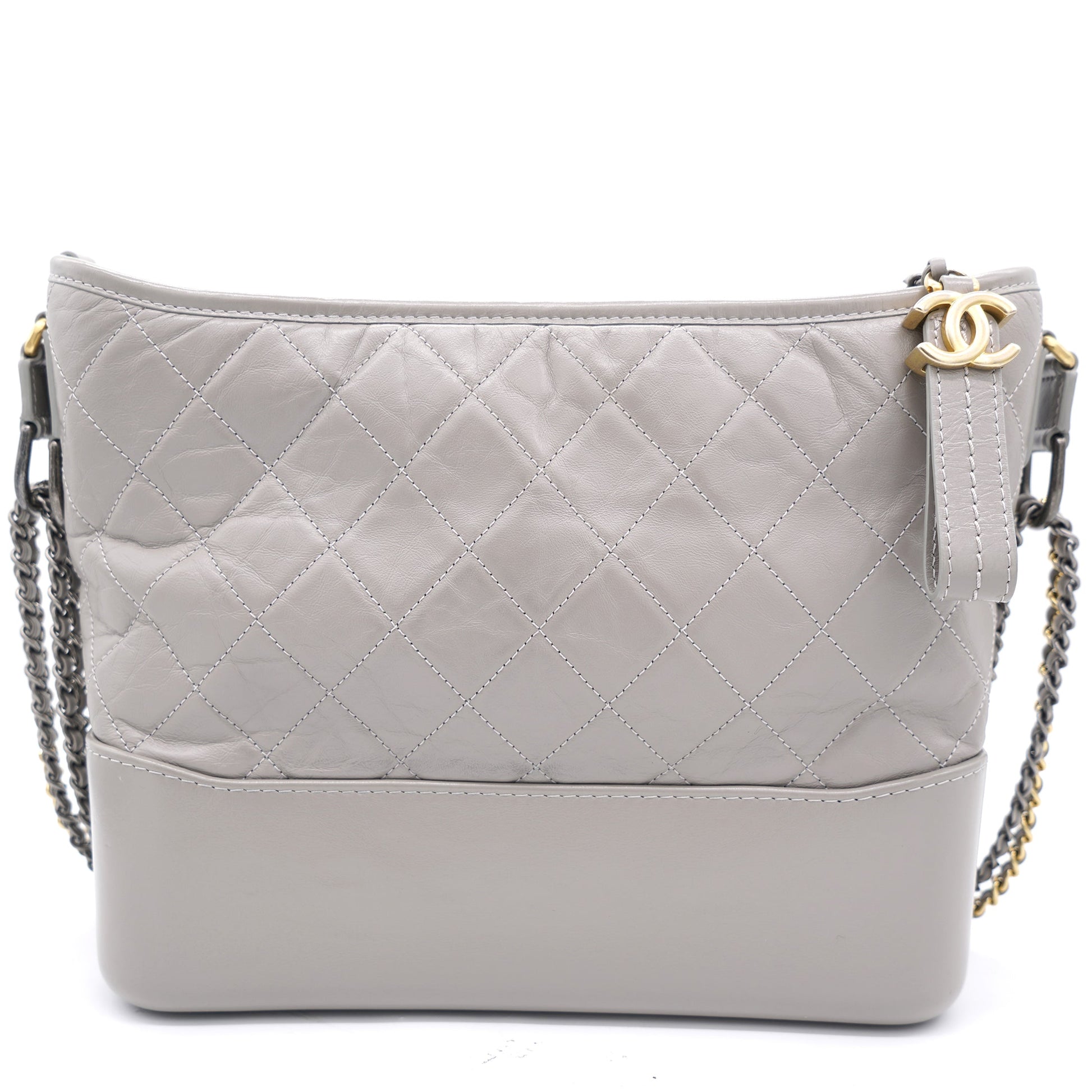 Chanel Grey Quilted Aged Calfskin Leather Gabrielle Hobo Bag