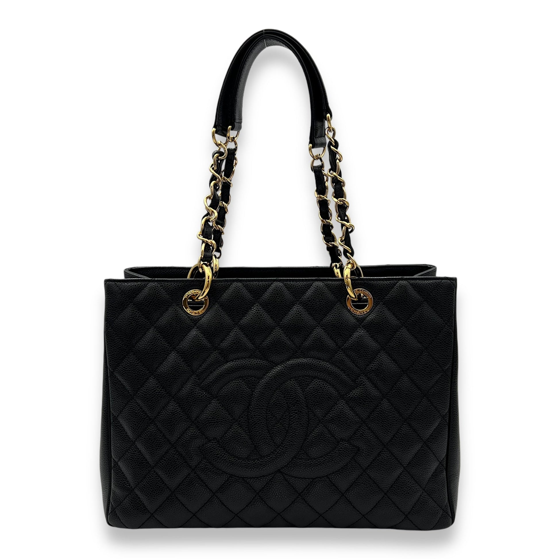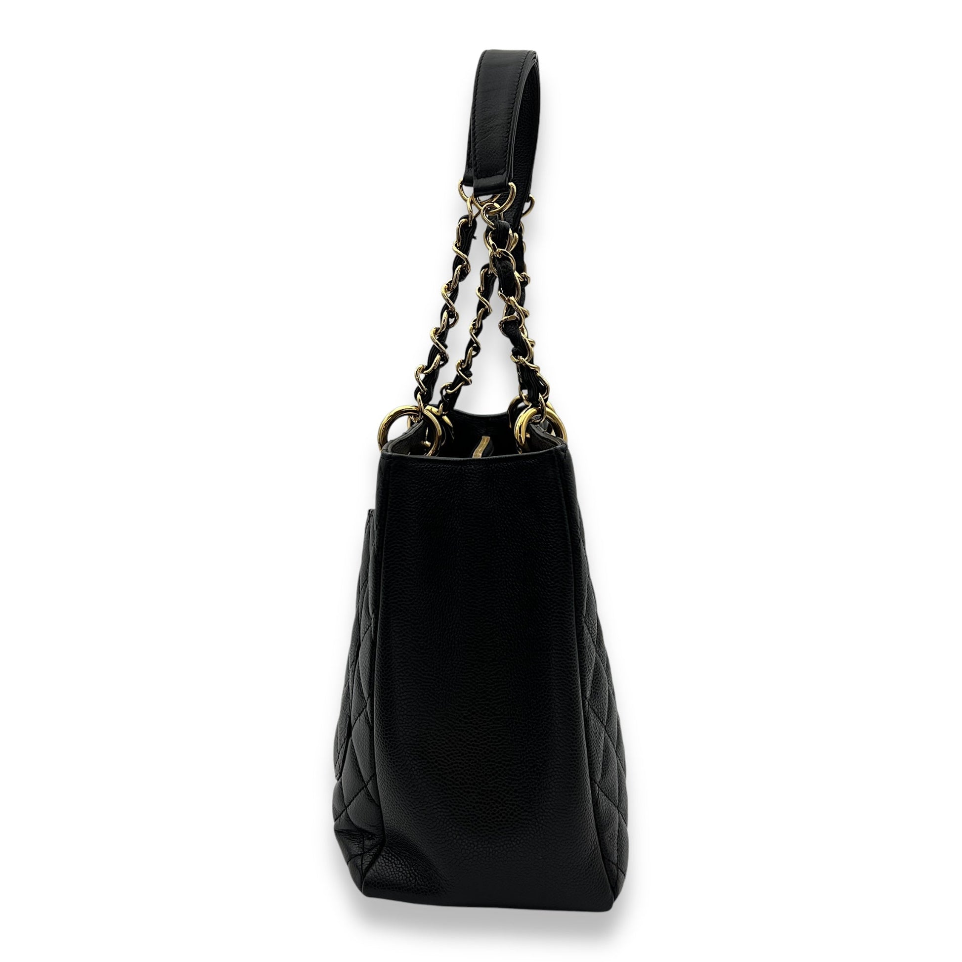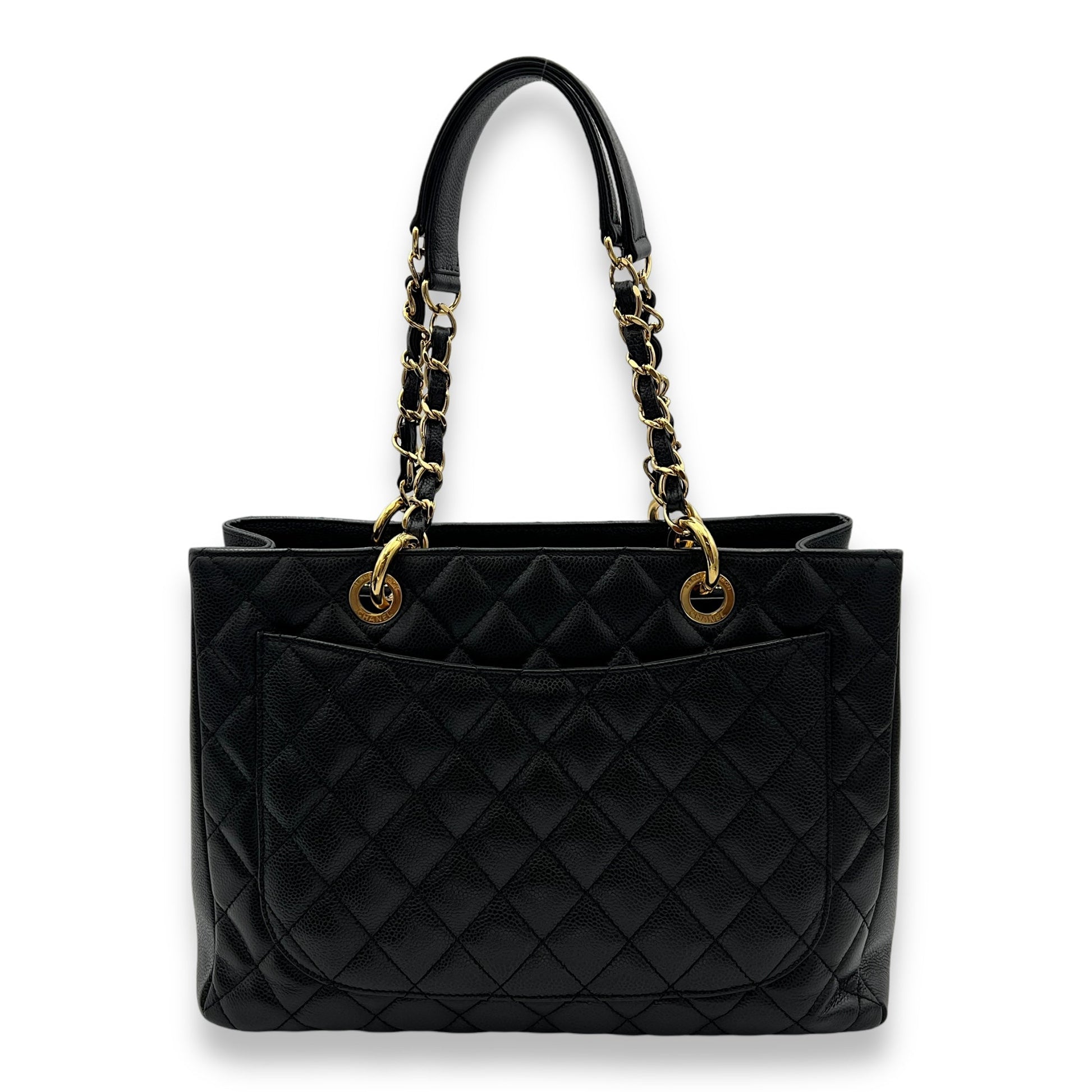 GST Black Tote Bag in Caviar Leather, Gold hardware