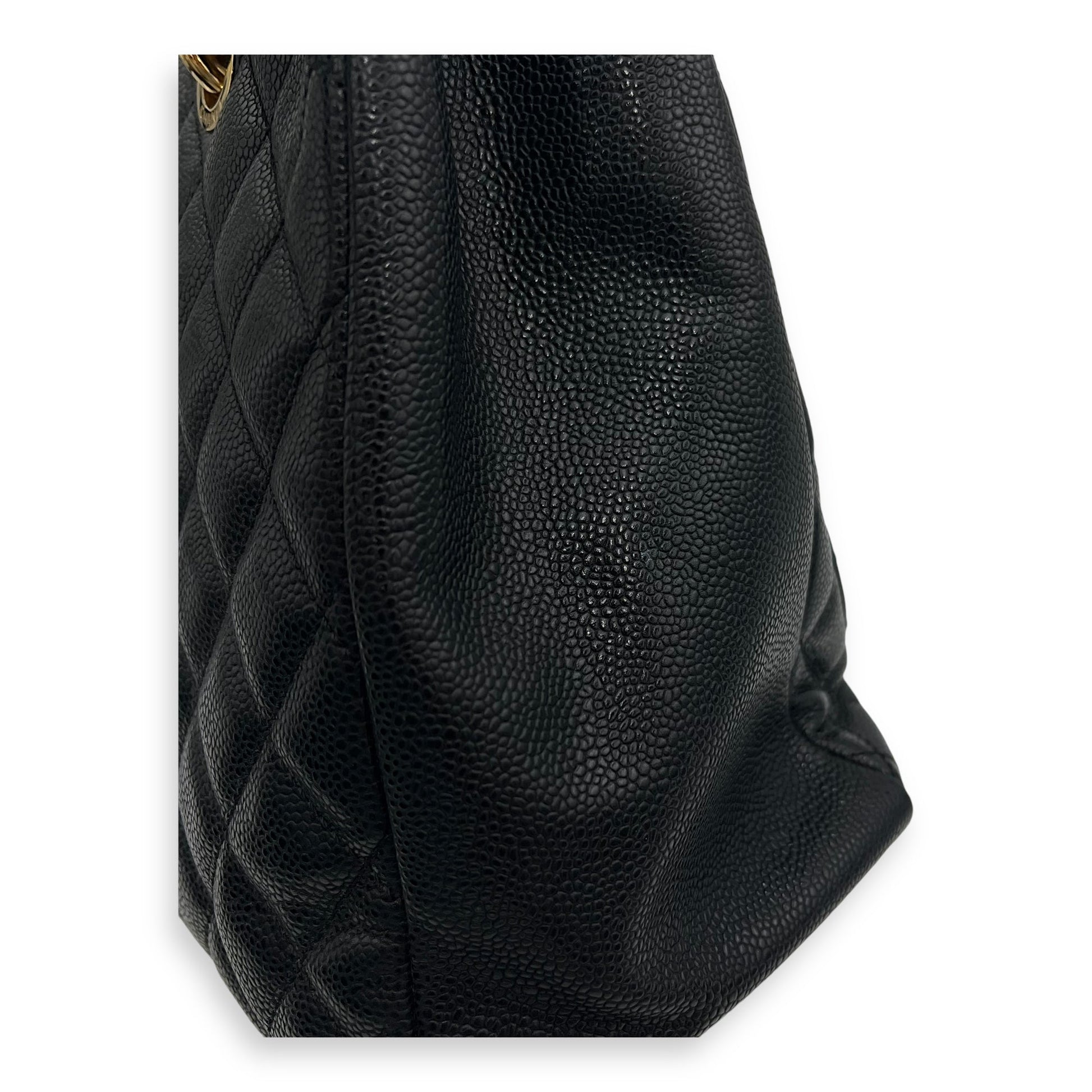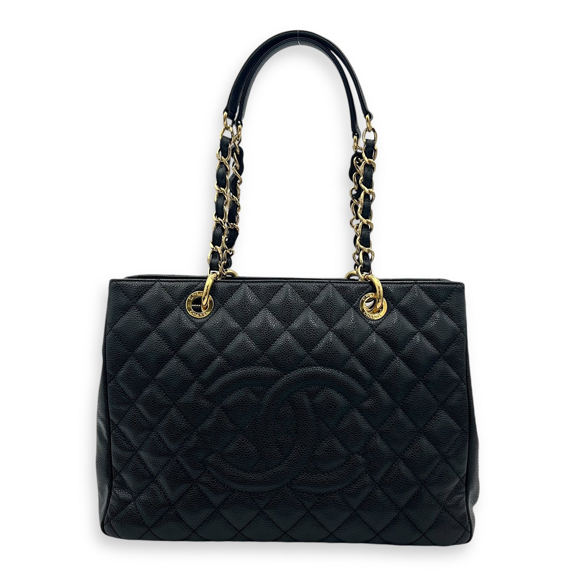GST Black Tote Bag in Caviar Leather, Gold hardware