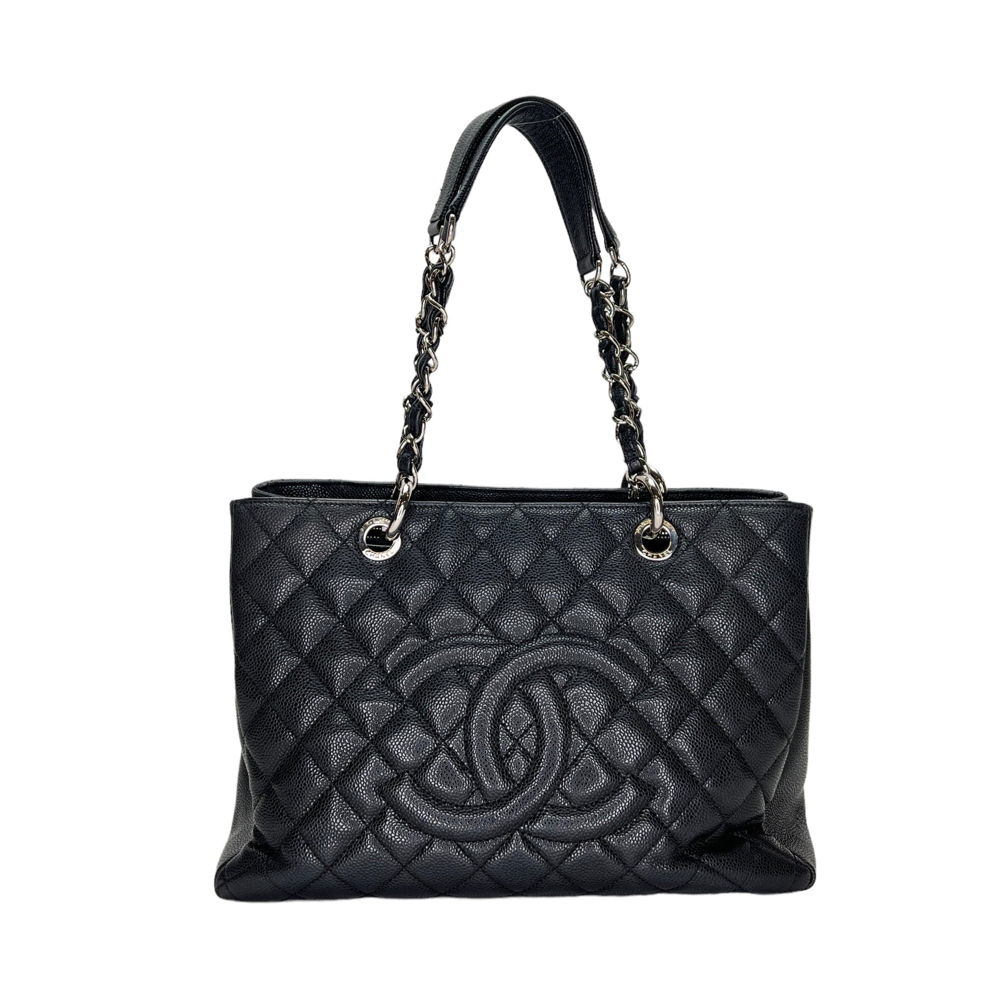 GST Grand Shopping Tote Black Tote Bag in Caviar Leather, Silver hardware