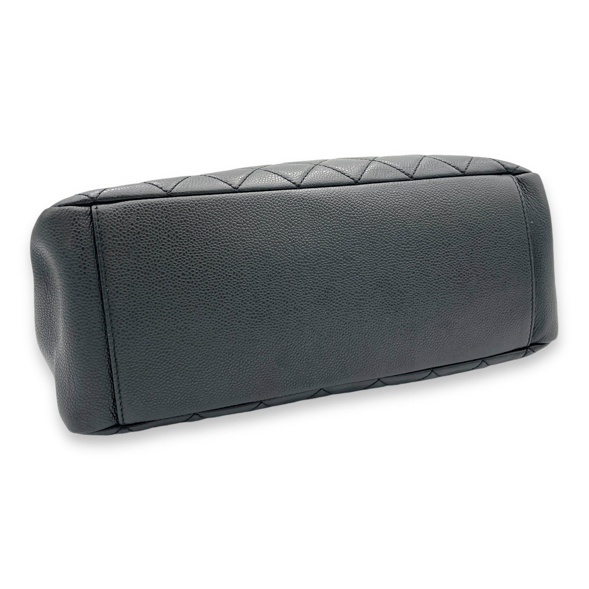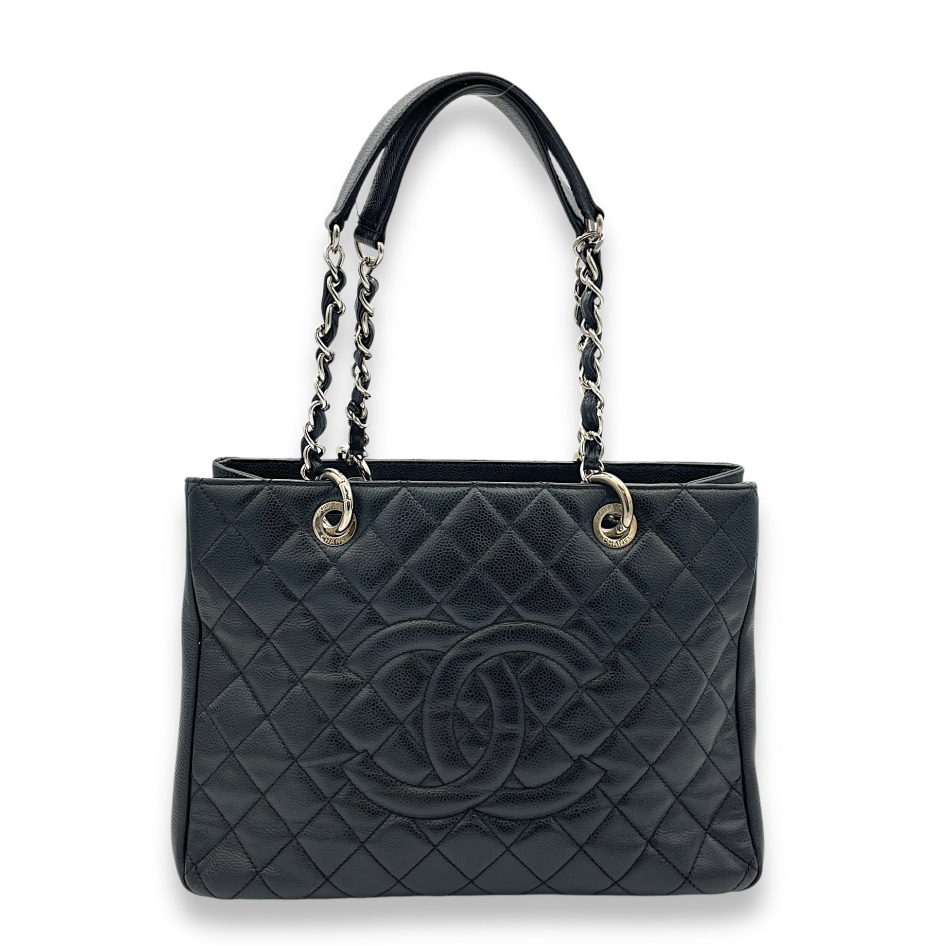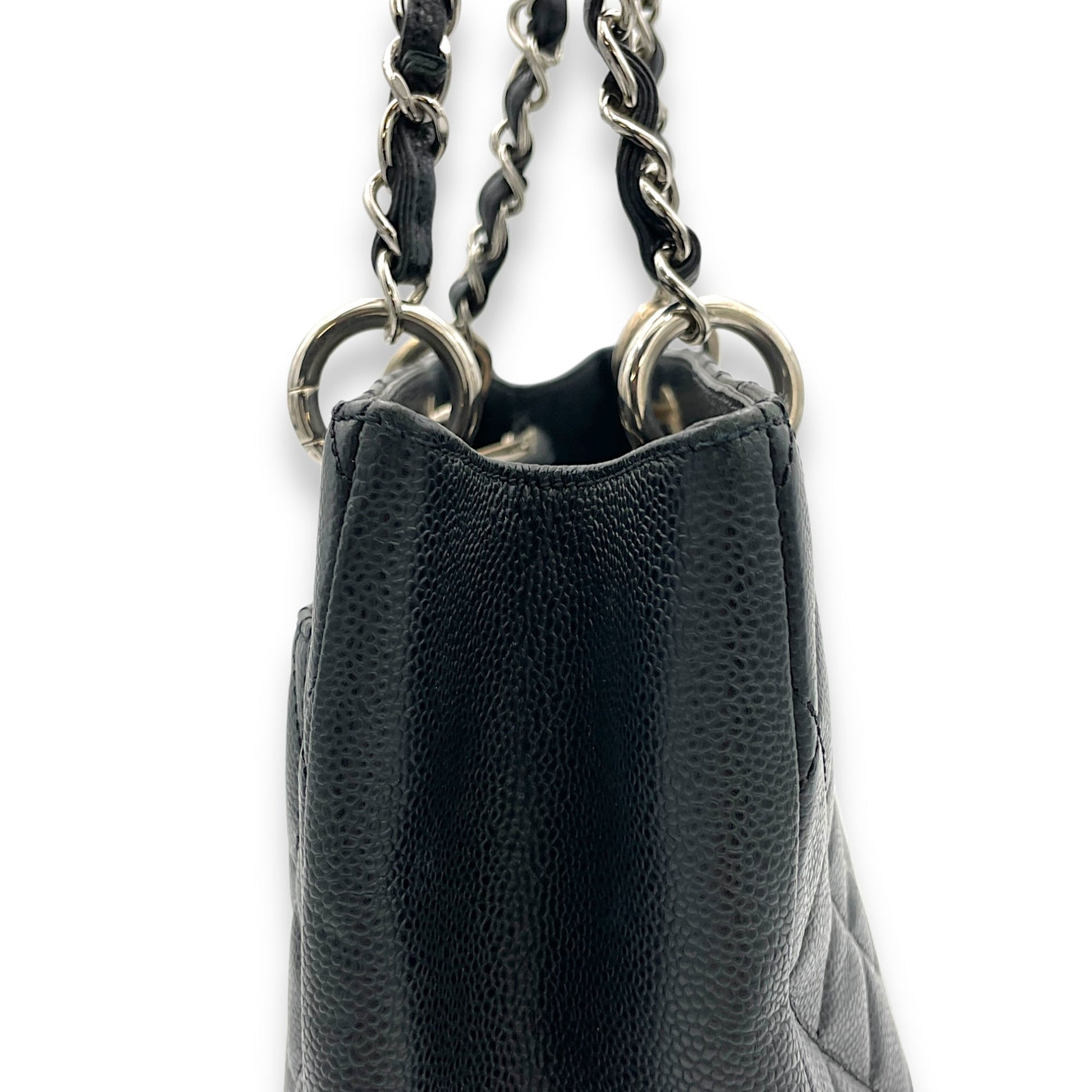GST Black Tote Bag in Caviar Leather, Silver hardware