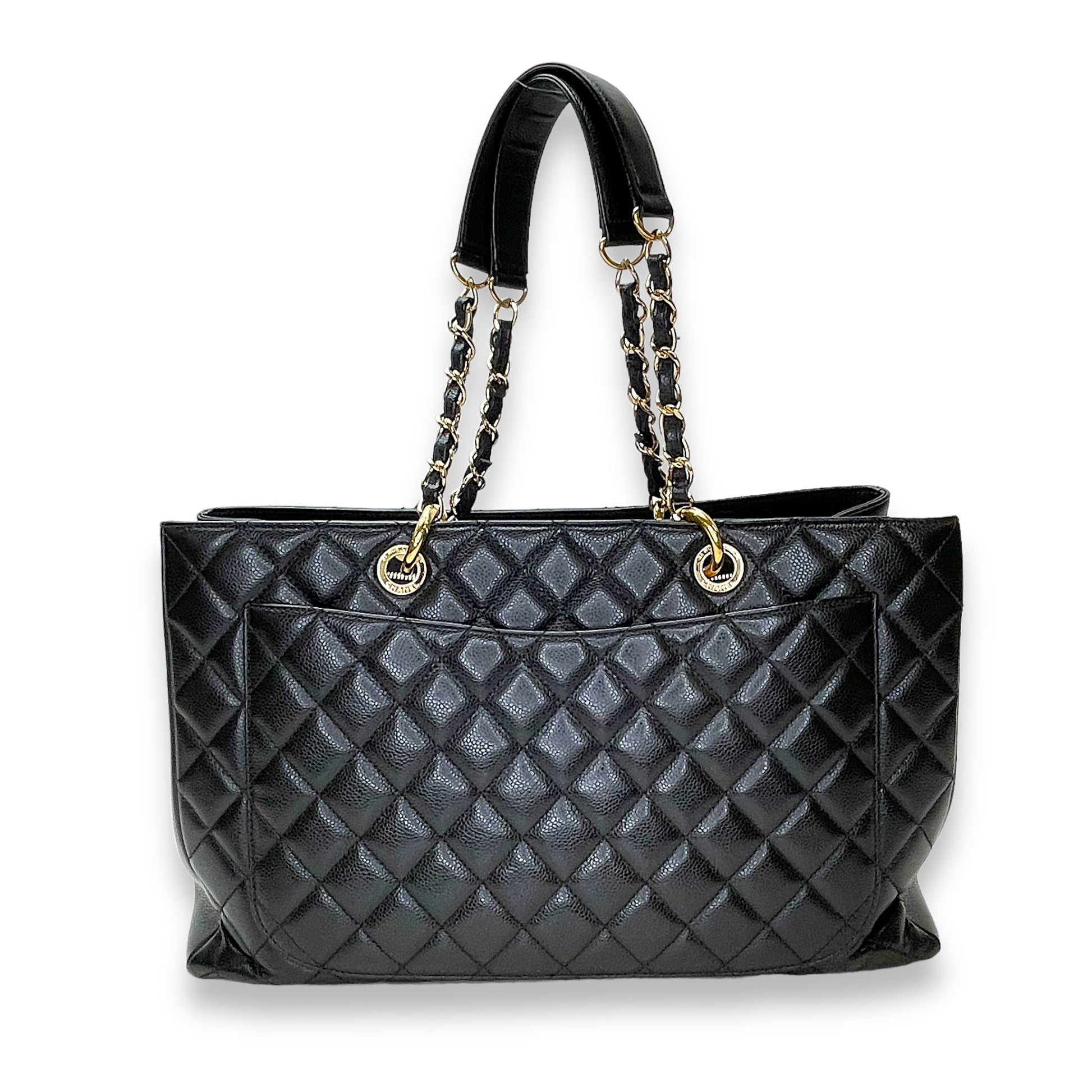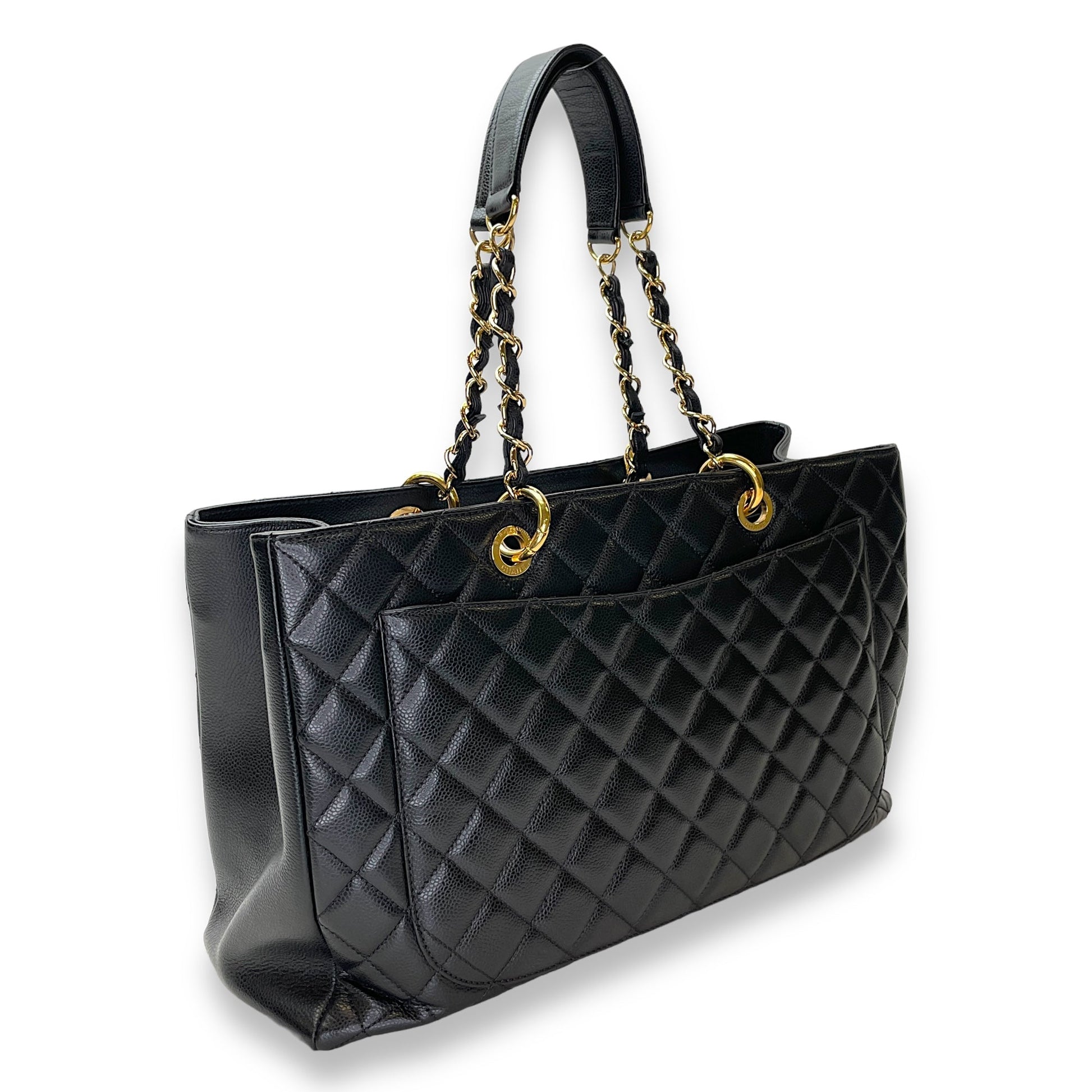 GST Grand Shopping Tote XL Black Shoulder Bag in Caviar Leather, Gold hardware