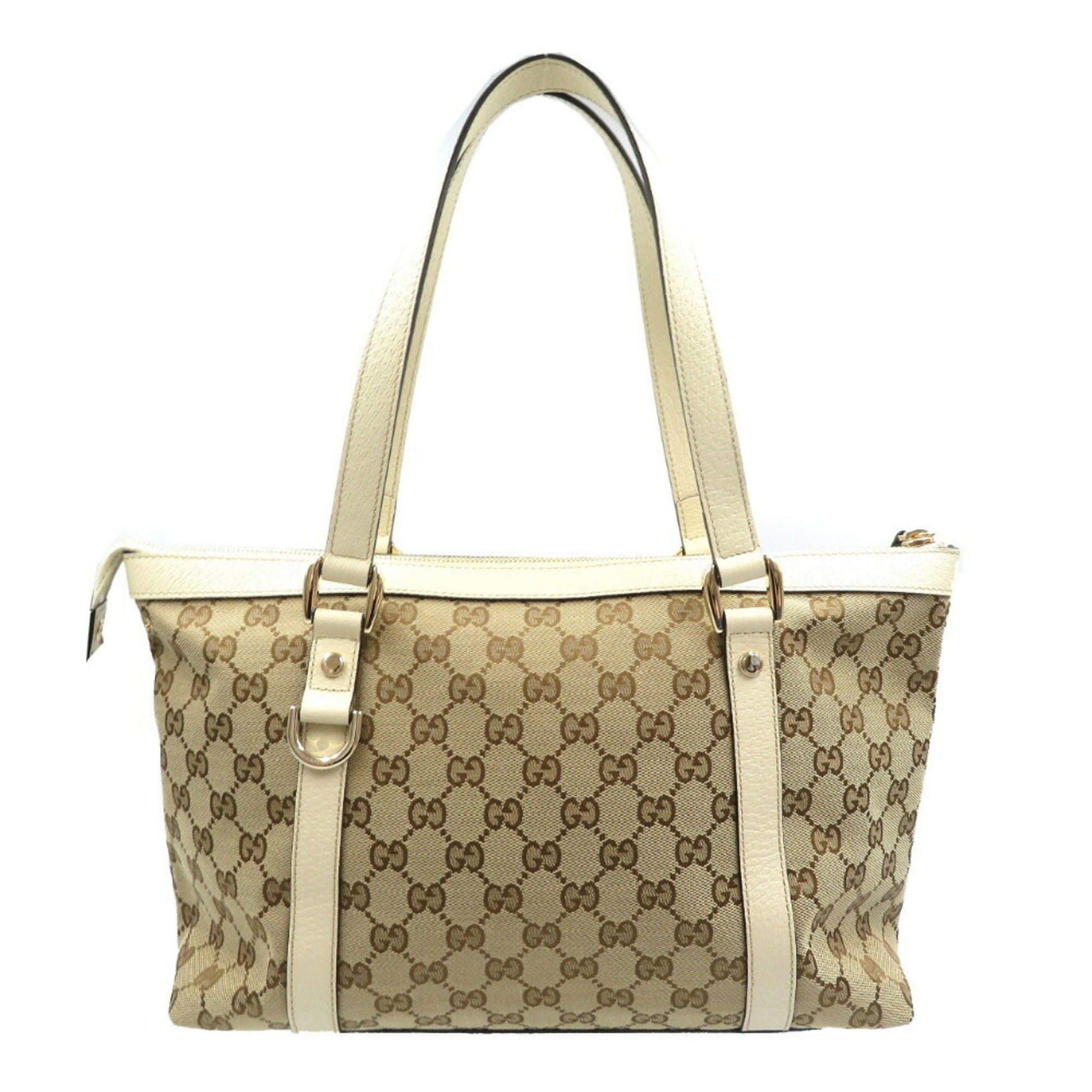 Gucci Abbey Line 141470 GG Canvas Leather Beige Tote Bag