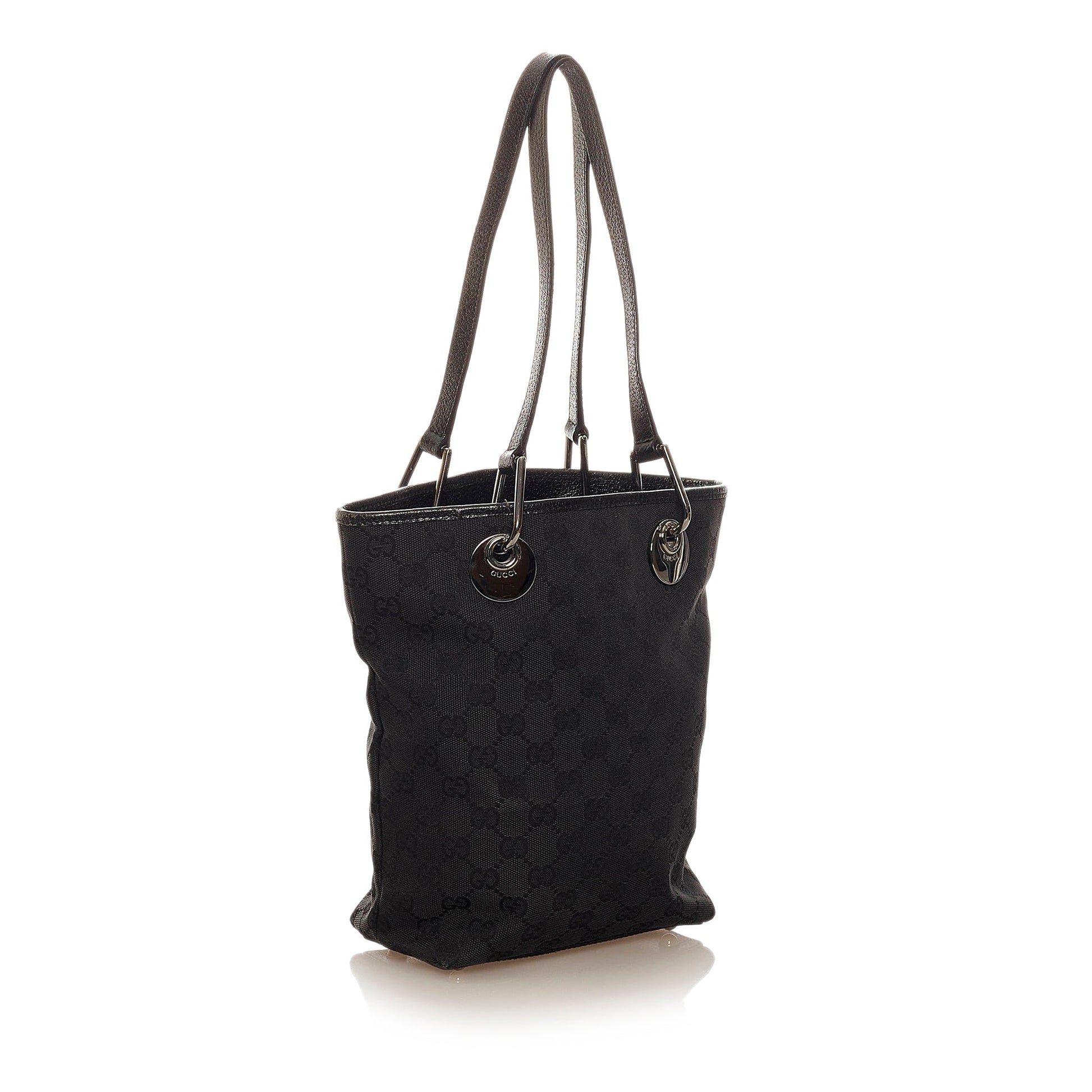 The Eclipse tote Bag features a canvas body with leather trim, flat leather straps, an open top, and interior zip pocket and slip pockets.