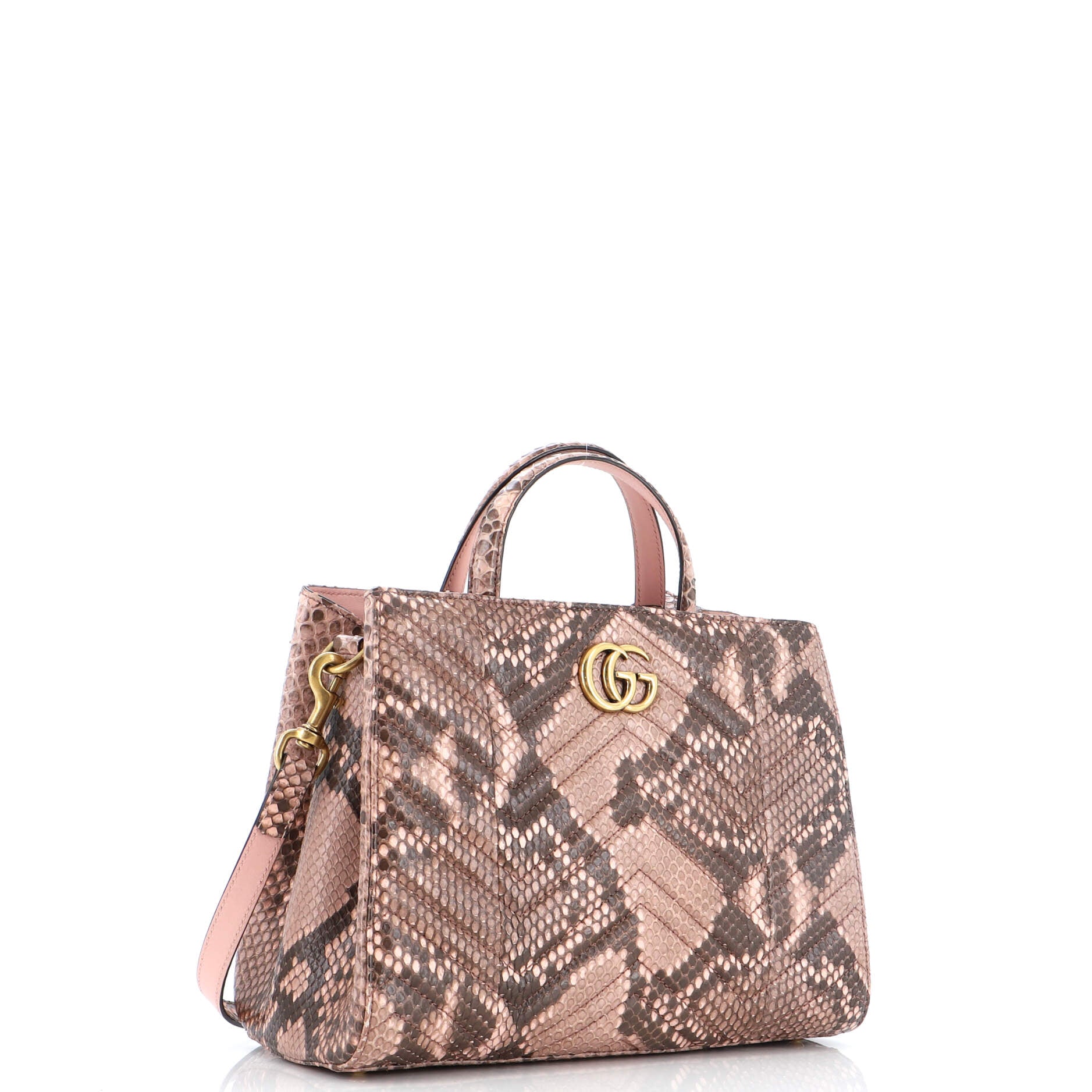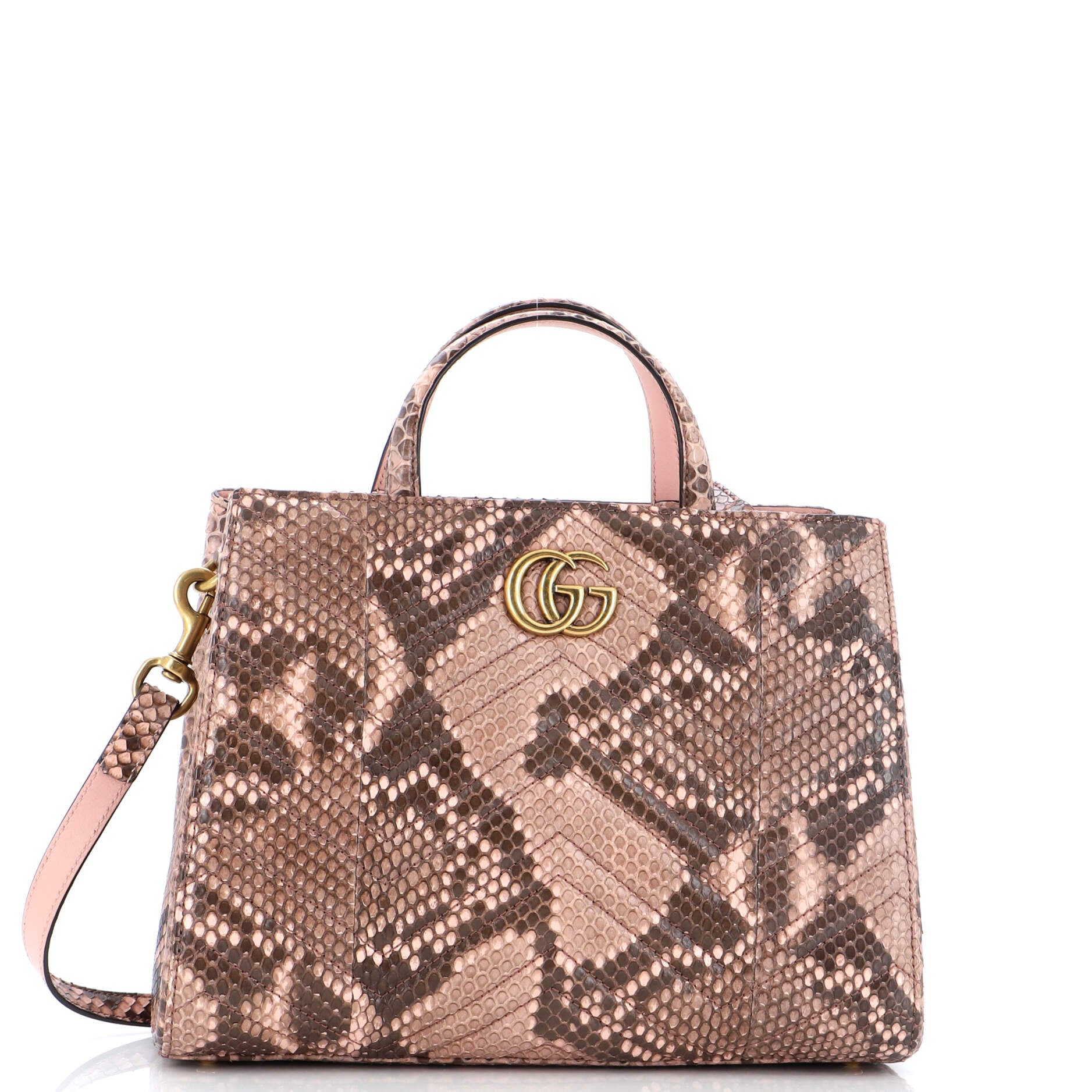 Elevate your style with the Gucci GG Marmont Tote Matelassé Python Small. Crafted from luxurious python skin, this tote exudes sophistication and glamour. The iconic GG logo and matelassé stitching add a touch of elegance to any outfit.