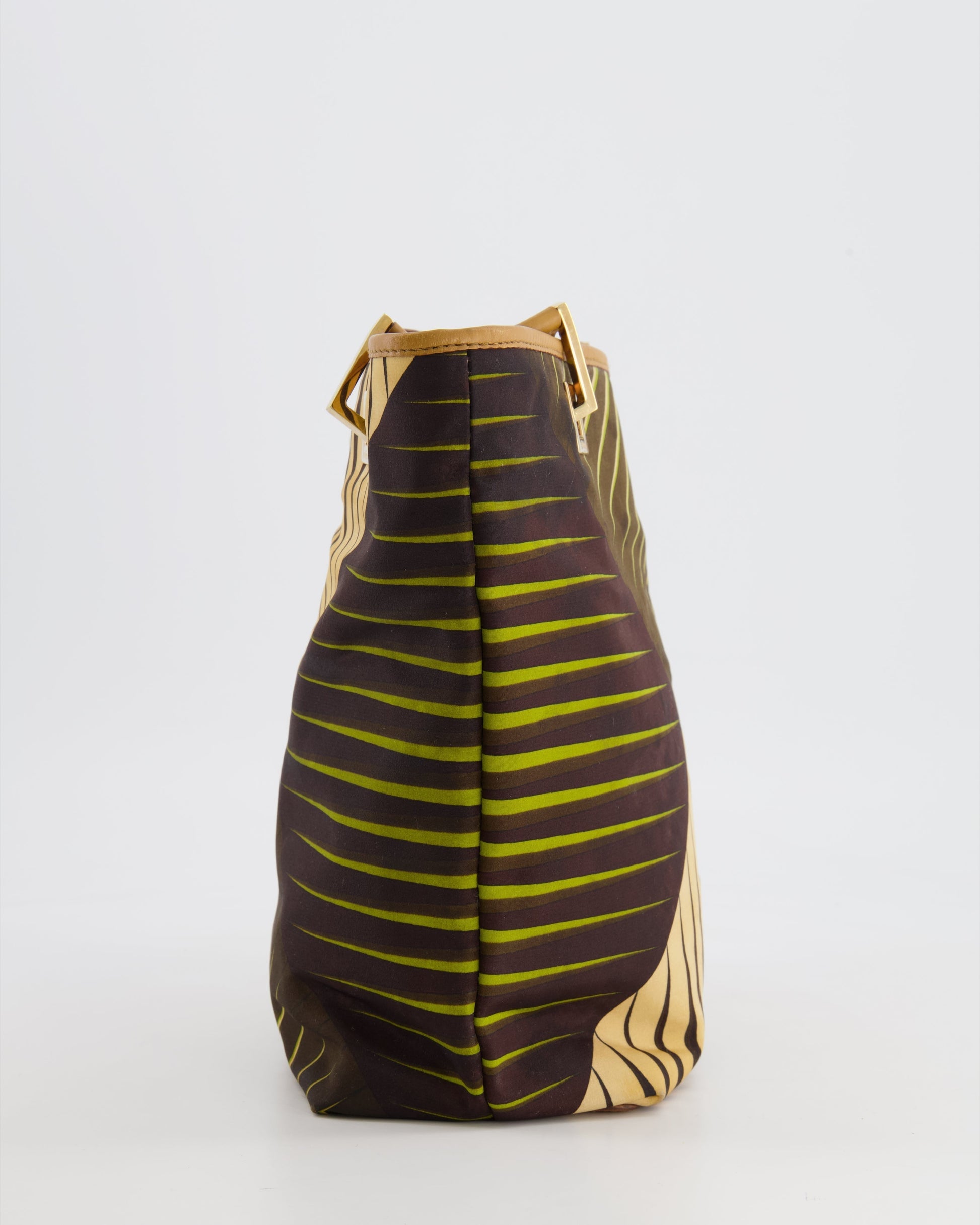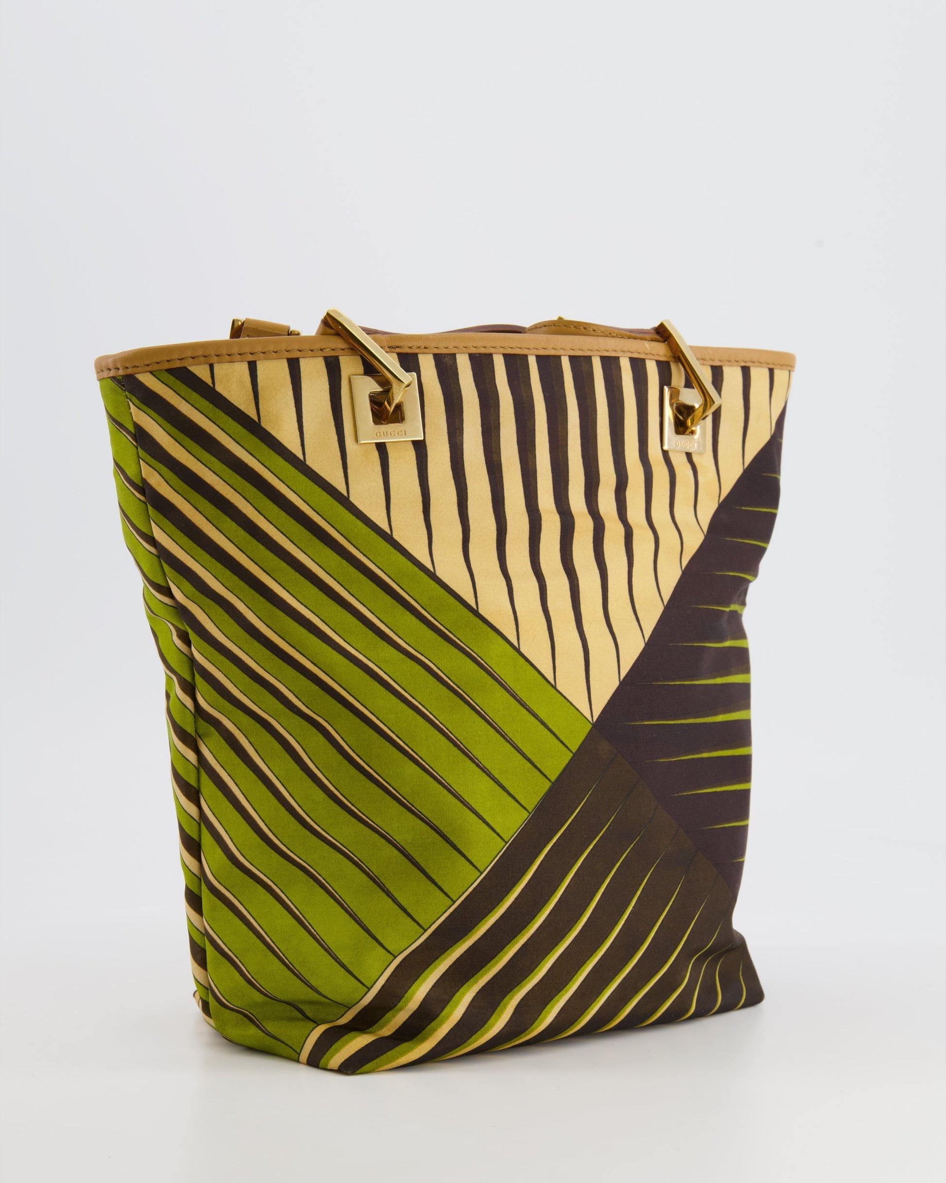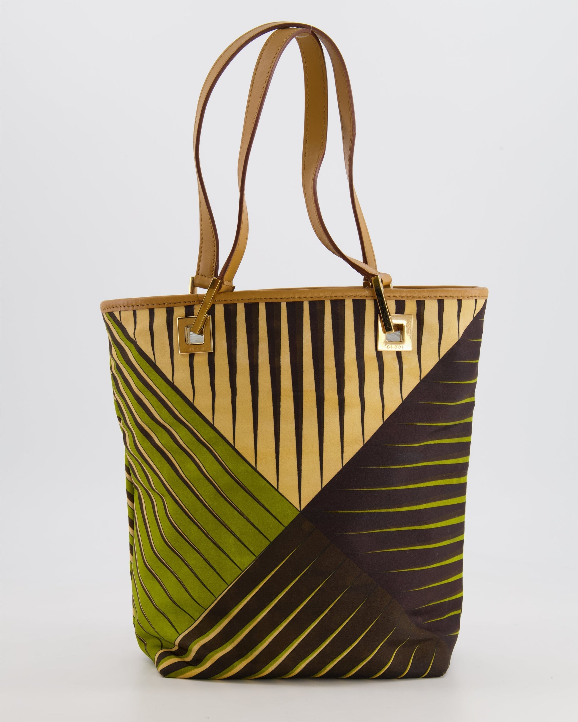 Gucci Vintage Green and Brown Printed Mini Tote Bag with Gold Hardware