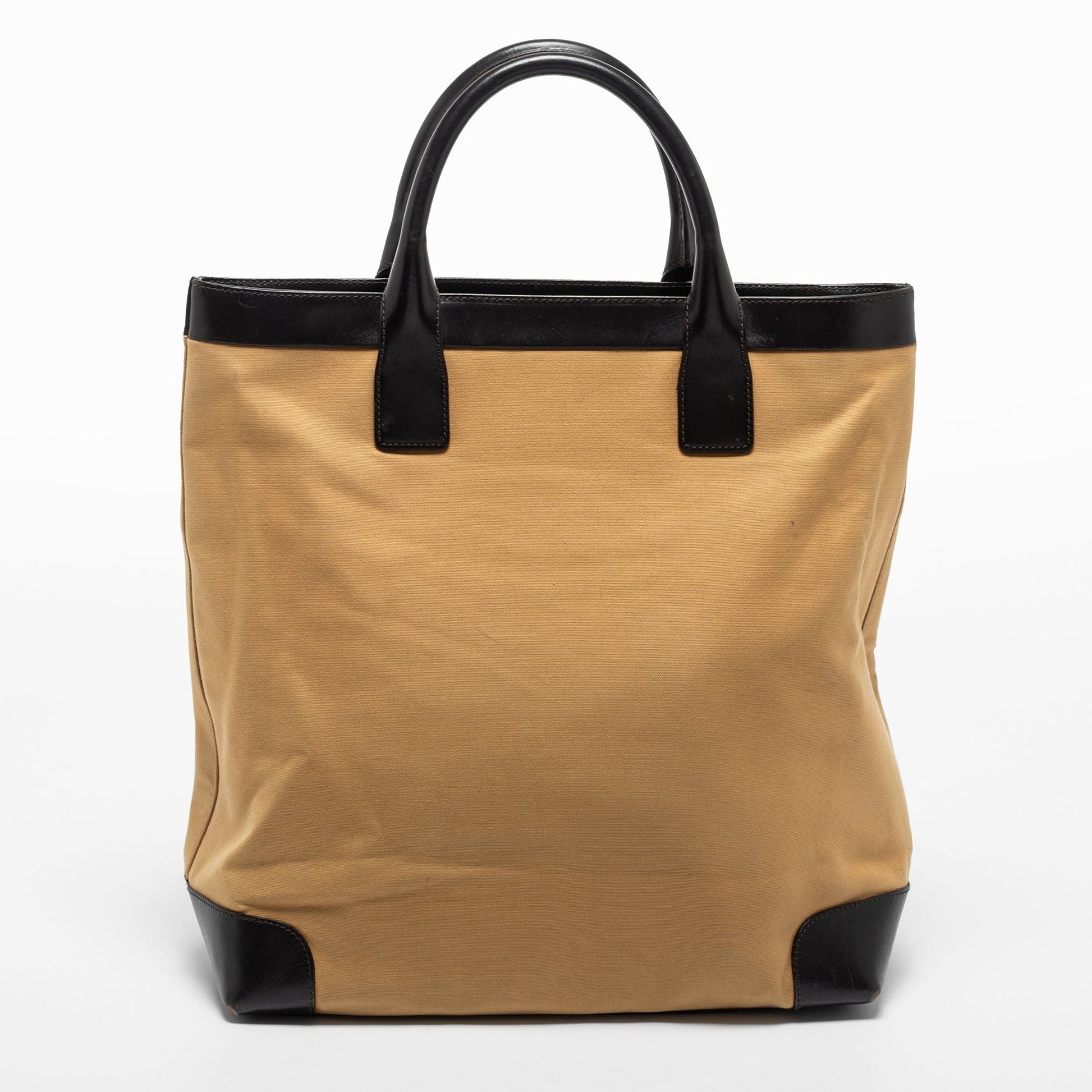 Gucci Khaki Brown/Black Canvas and Leather Large Vintage Web Shopper Tote
