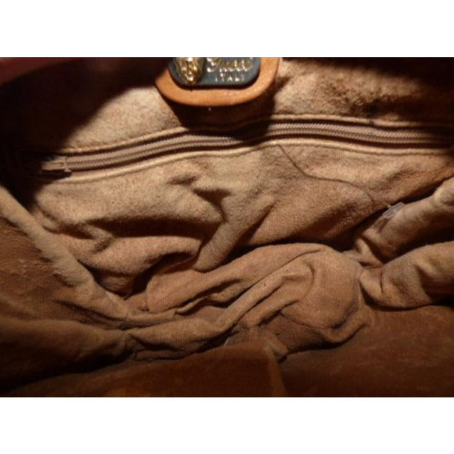 On the interior, there is one main compartment with a back zipper pocket and a top zipper closure. You can see the Gucci logo on the exterior and the leather trim is thick and strong. It is 100% Gucci made in Italy, has the gold embossed signature, and it has been ated by a third party source, so buy with confidence!
