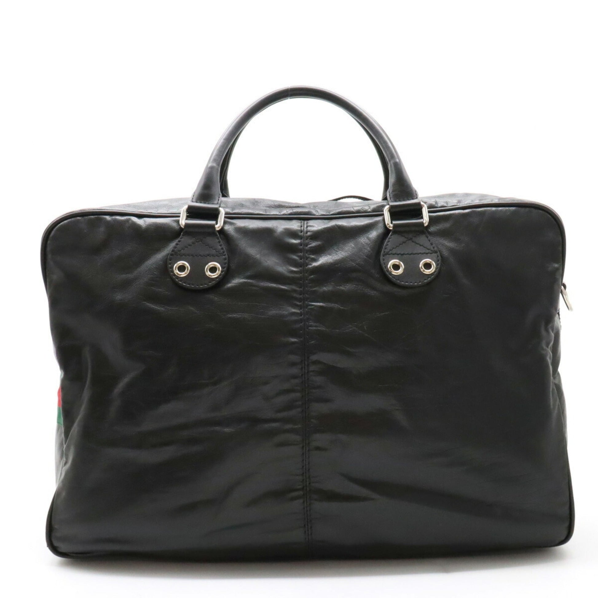 GUCCI Sherry Line Boston Bag Tote Large Leather Black Green Red 194460