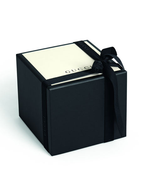 - green-red-green web dial with gold-tone square markers, two hands, and Gucci logo
