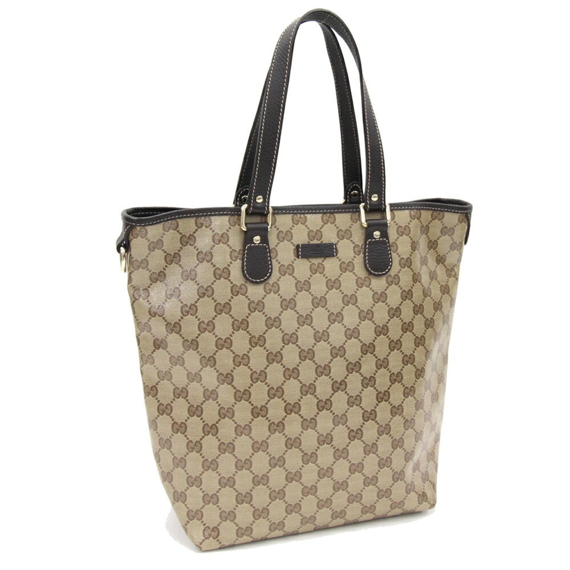 Gucci tote bag GG crystal 265693 dark brown beige PVC leather ladies GUCCI