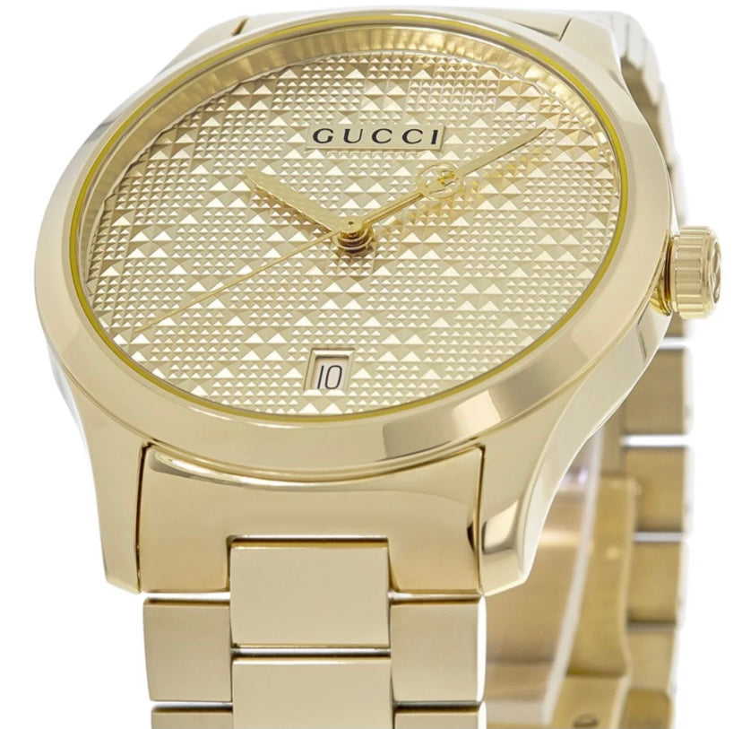 GUCCI G-Timeless Yellow Gold Diamond Pattern Dial Watch