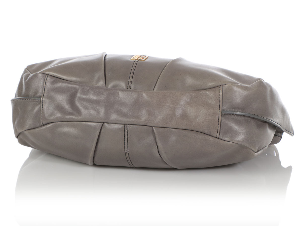 With its wonderfully wide shape, Givenchy’s Medium Gray East-West Tote has plenty of storage space to get you from nine to five! Made of pleated gray leather with brushed-gold hardware, it can be carried by the rounded top handles with a 3.5-inch drop or slung crossbody with the detachable, adjustable strap shown with an 18.25-inch drop. Unzip the top and you’ll find black fabric lining with one zipped and one slide pocket inside. In good condition with a dustbag and tag, it has light scratches on the leather and hardware, tiny dark marks throughout, wear on the corners and handles, a popped thread on one corner, white marks inside, and a faint perfume smell. The convertible carrying options and year-round color make this Givenchy a win-win!