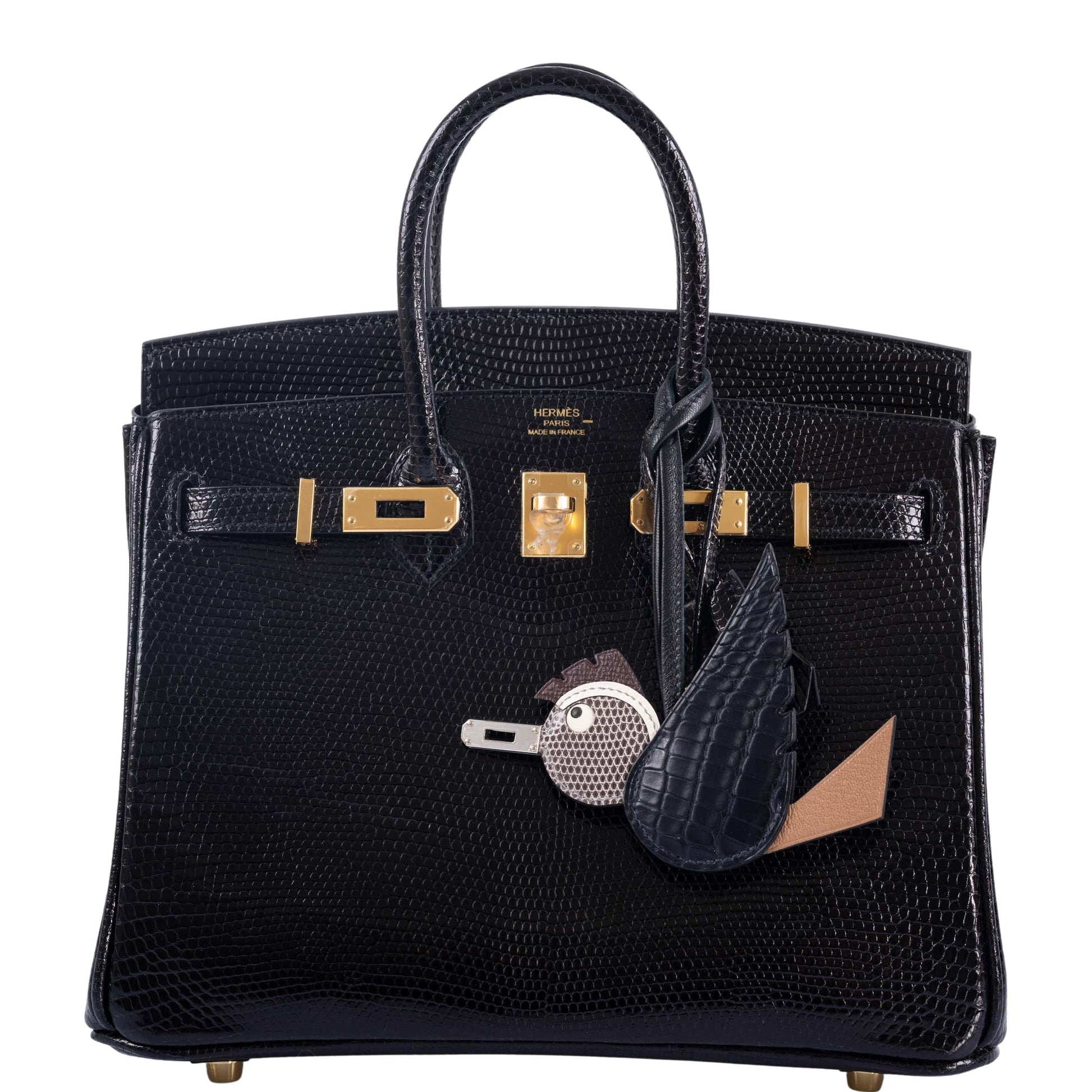 Hermès Birkin 25 Black Shiny Nilo Lizard Gold Hardware