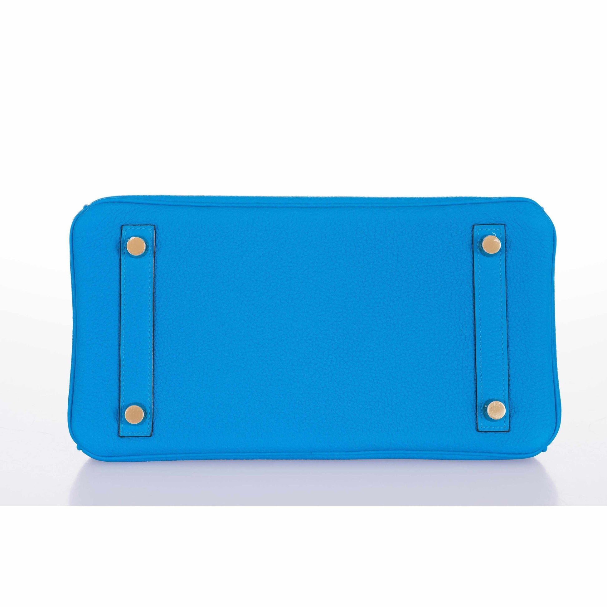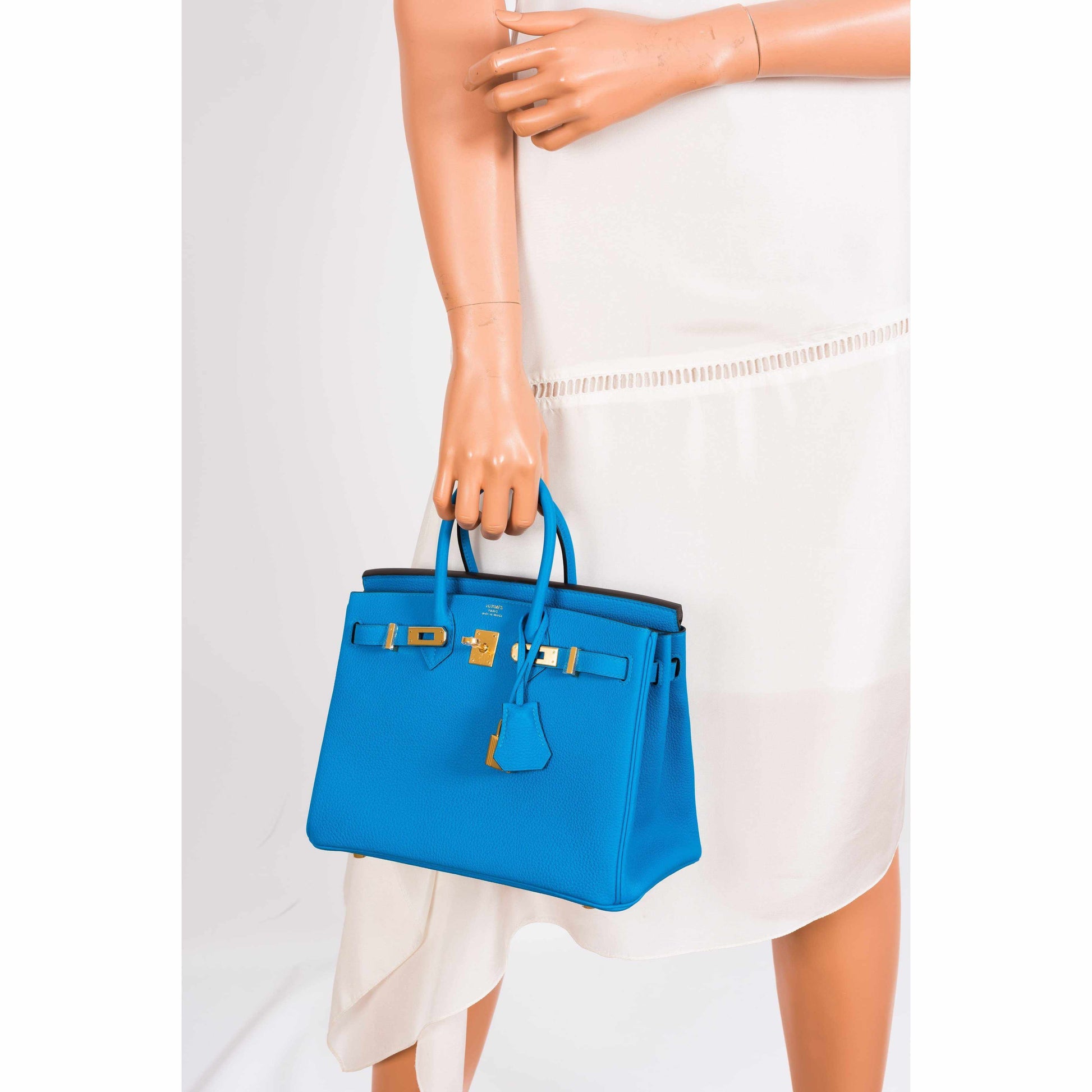 Store Fresh Color 2017 Incredible Store Fresh Blue – Hermès Birkin 25 Blue Zanzibar Togo Leather Gold hardware. The beauty of the Togo leather is appreciated as it naturally possesses a texture that is neither too hard nor too soft, making it one of the most popular leather. Enjoy the smooth and fine texture of the Hermès leather and discover how this grainy leather is also a hardy material as it is resilient to scratches and dirt even when used daily. The interior is lined in Craie Chevre with one zip pocket with an Hermès engraved zipper pull and an open pocket on the opposite side. Comes with Hermès box, dust-bag, clochette, lock, two keys, clochette dust-bag, rain-hat, care booklet and felt.