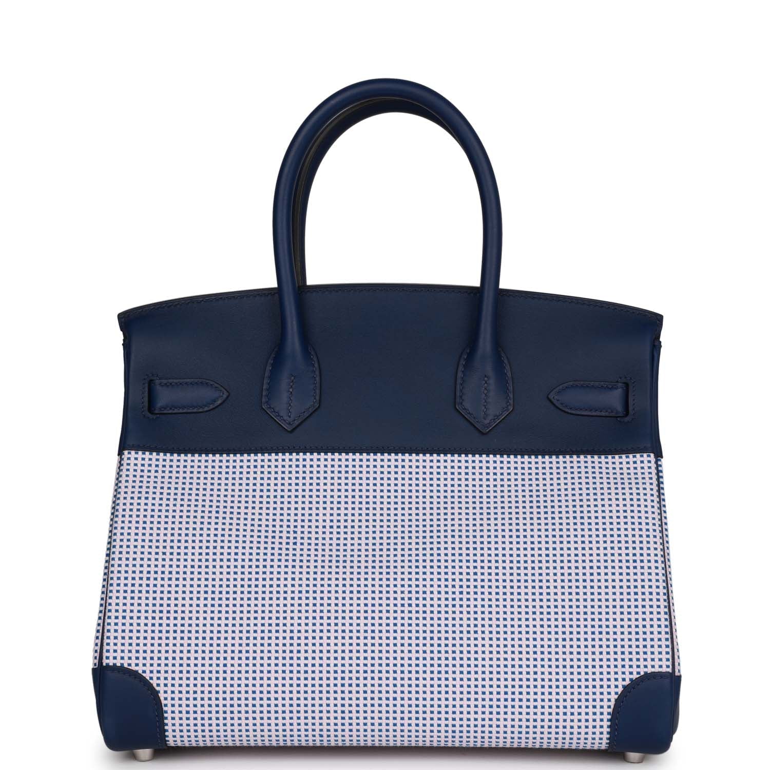 Hermes Quadrille Birkin 30 Bleu Saphir Swift and Ecru Mauve Toile Palladium Hardware