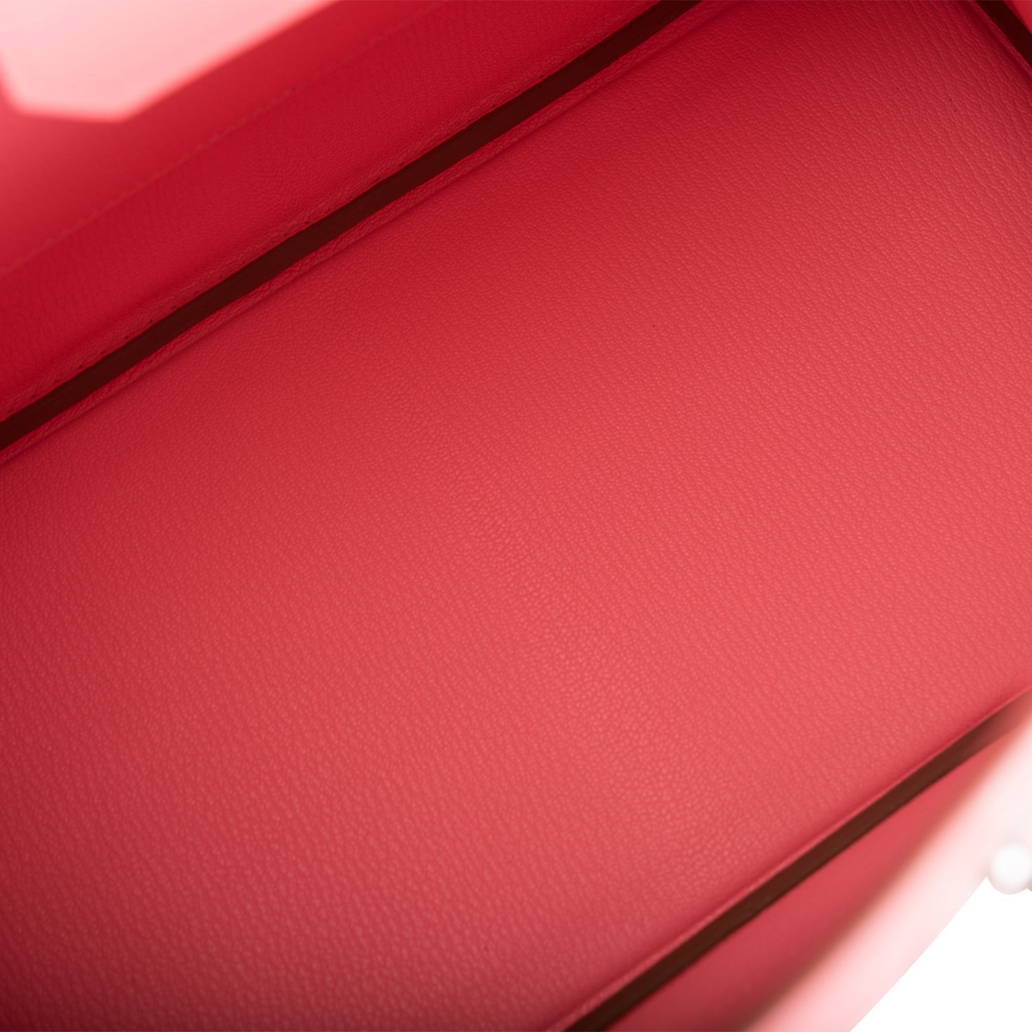 The interior is lined with Rose Confetti chevre and has a zip pocket with an Hermes engraved zipper pull and an open pocket on the opposite side.