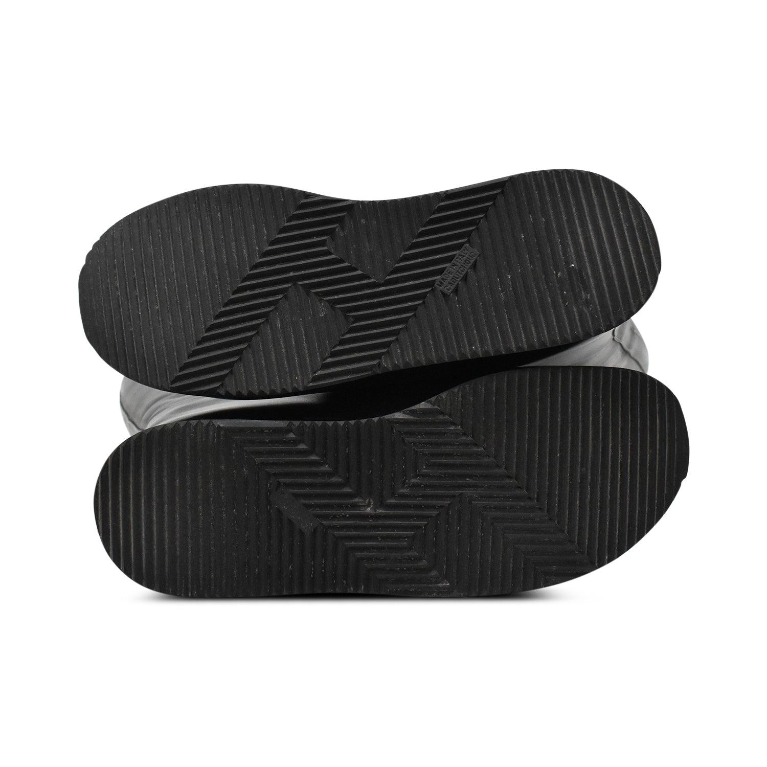 Hermes black calf high boots in round toe and foam sole. Features white contrast stitching and logo embossed on the calf. Includes dust bag and box