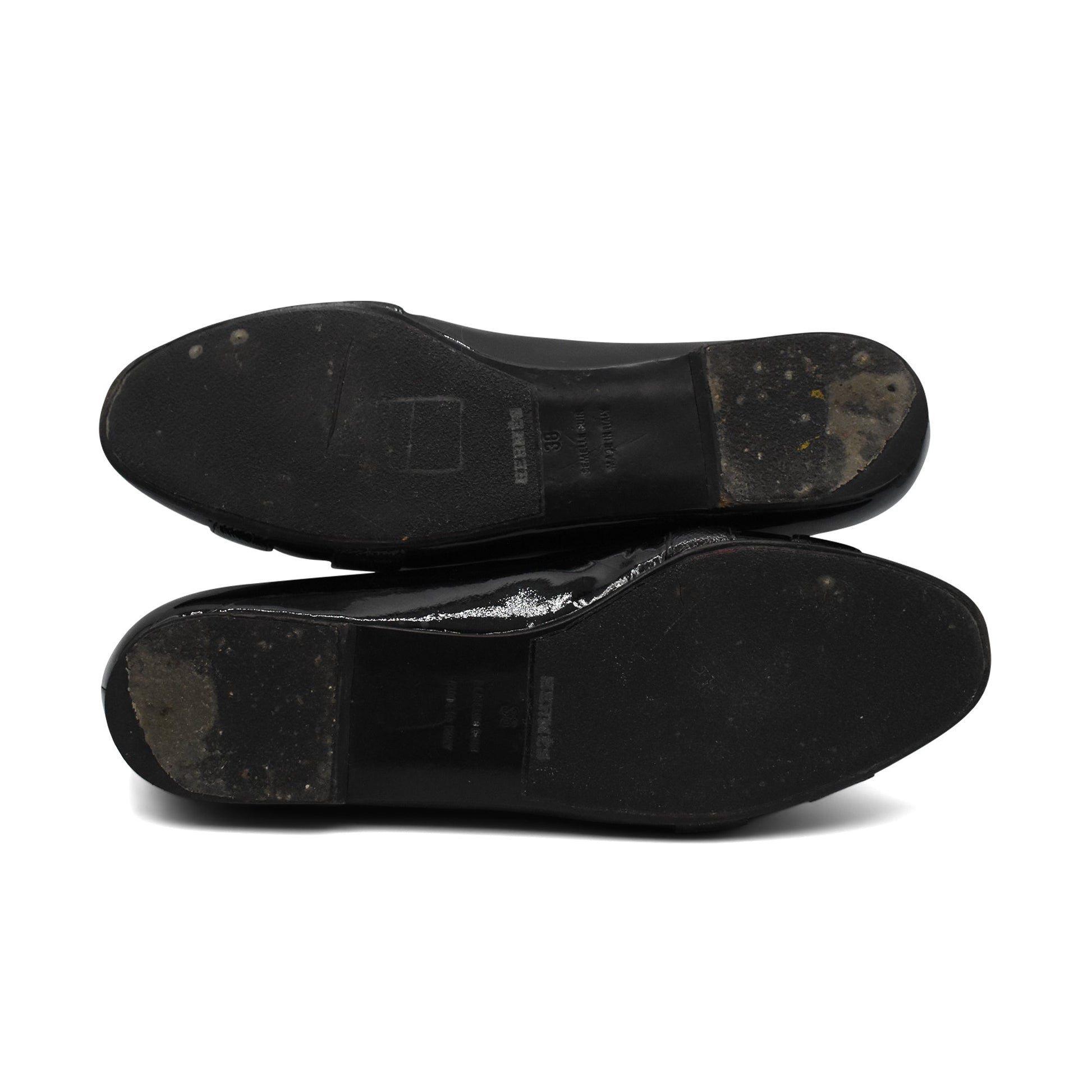 Hermes 'Nice' ballet flats in black patent leather with patent epsom leather 'H' detail on the toe box.
